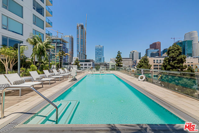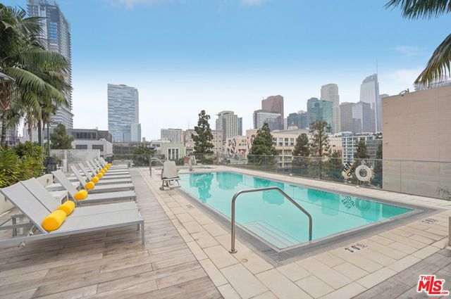 Experience luxury living in the heart of DTLA with your very own private retreat at Ten50, one of South Park's premier high-rise residences. From the moment you arrive, you're welcomed by 24-hour security and concierge service. Take the elevator to the 7th floor and step into this pristine, southwest-facing 2-bedroom home, filled with natural light streaming through expansive windows that highlight the beautiful wood flooring. The sleek, modern kitchen is a chef's dream, featuring oversized marble countertops, a Bertazzoni cooktop, Bosch oven, and a Liebherr refrigerator. The open-concept layout seamlessly blends dining, living, and entertaining while showcasing captivating skyline views of Downtown LA. The sun-drenched primary suite offers a customized walk-in closet with wood cabinetry and a spa-inspired ensuite with dual vanities and a glass-enclosed shower. The secondary bedroom is equally spacious, boasting abundant light and ample closet space with custom built-ins. A conveniently located in-unit washer and dryer completes the floor plan. Ten50 provides resort-style amenities designed for both relaxation and entertainment: a landscaped terrace with pool, spa, BBQs, and sundeck overlooking the skyline, plus a state-of-the-art fitness center, theater, and stylish clubhouse. Residents also enjoy a secured gated garage, guest parking a rare find in DTLA and close proximity to world-class dining, shopping, and public transit. This is luxury living at its finest in Downtown Los Angeles. Don't miss out on one of the best opportunities in South Park!