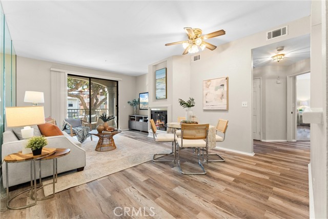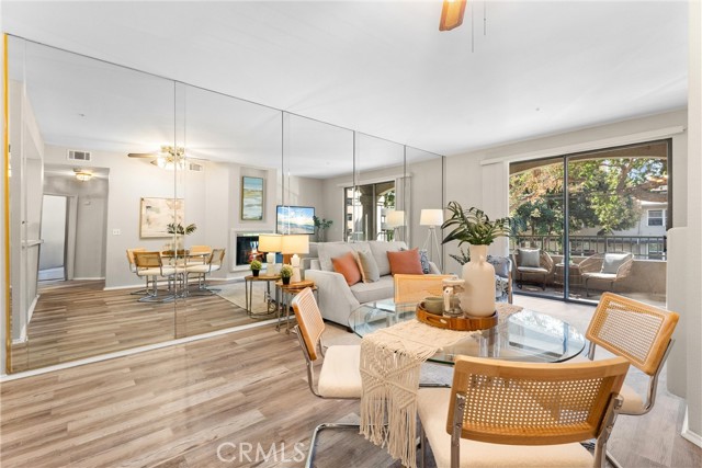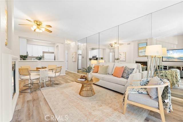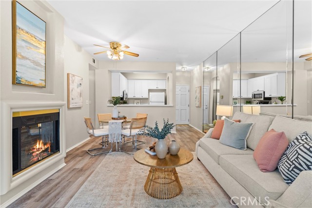 Beachside condo for the 2028 Olympics, Corner unit 2 bed, 2 bath, 2 parking spaces, private balcony, in-unit laundry, and walkable access to downtown Long Beach dining, shopping, and entertainment. This spacious two bedroom, two bathroom home features an open floor plan with durable vinyl flooring, a striking mirrored wall that enhances the sense of space and natural light, and a cozy fireplace that creates a warm and inviting living area. The living room flows seamlessly to a private balcony, ideal for enjoying fresh air and outdoor relaxation. The kitchen is equipped with white cabinetry, tiled counters, a stainless steel microwave, gas stove, and a breakfast bar that connects to the dining and living space, making it perfect for entertaining. Both bedrooms are generously sized with large mirrored closets, while the primary suite includes its own private bath. Additional highlights include the convenience of in-unit laundry with a stacked washer and dryer, and two assigned parking spaces (#34 and #35) in the secured community garage. Located just blocks from the ocean, the Long Beach Aquarium, Convention Center, The Promenade, new City Hall, and the new library, this home is surrounded by vibrant restaurants, shopping, and coastal attractions. With gated entry, proximity to Metro access, and walkability to everything Downtown Long Beach has to offer, this condo is as convenient as it is desirable. Just in time for the 2028 Olympics, it’s the perfect place to call home or an incredible opportunity to rent out during the games.