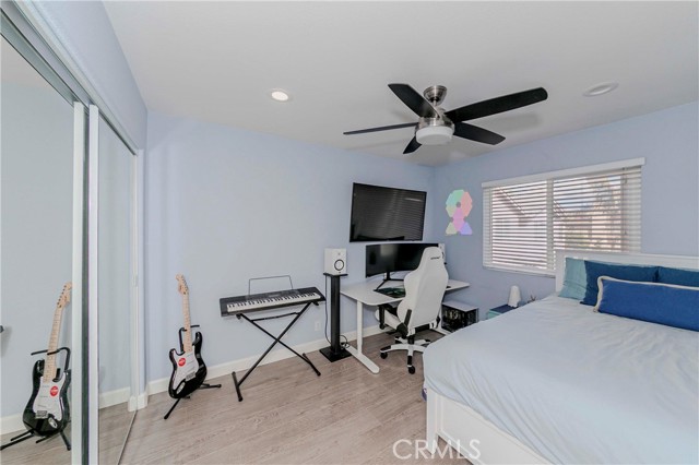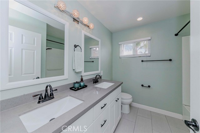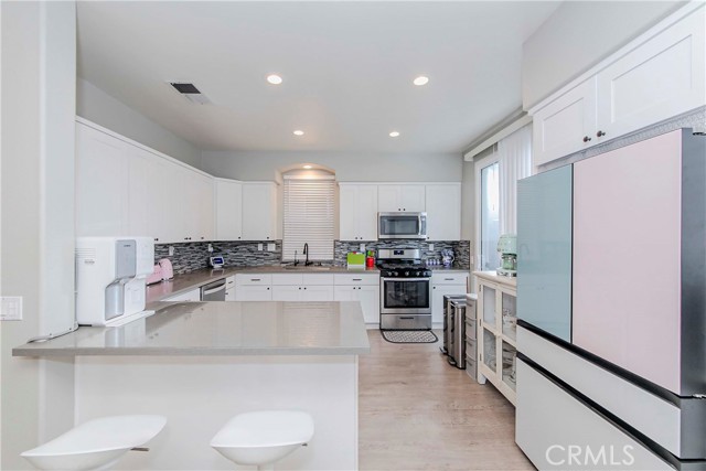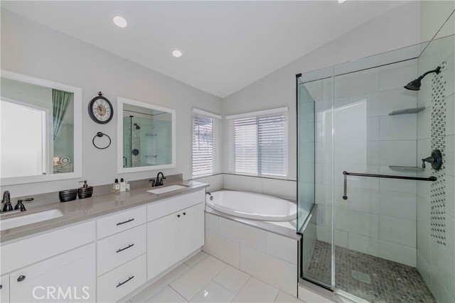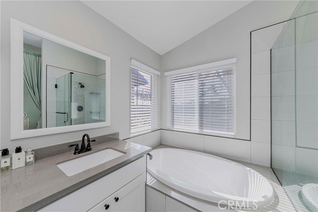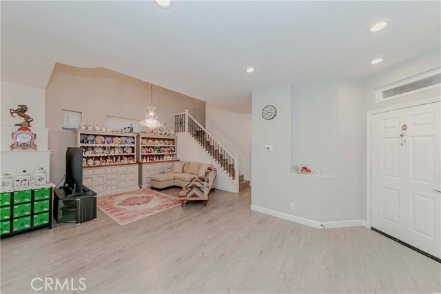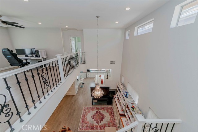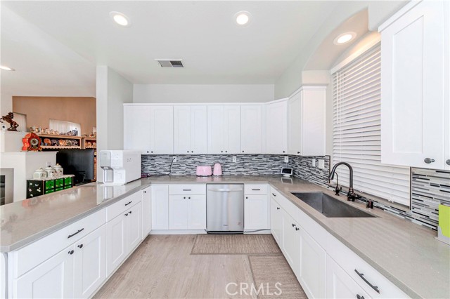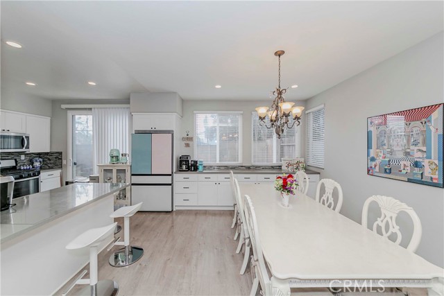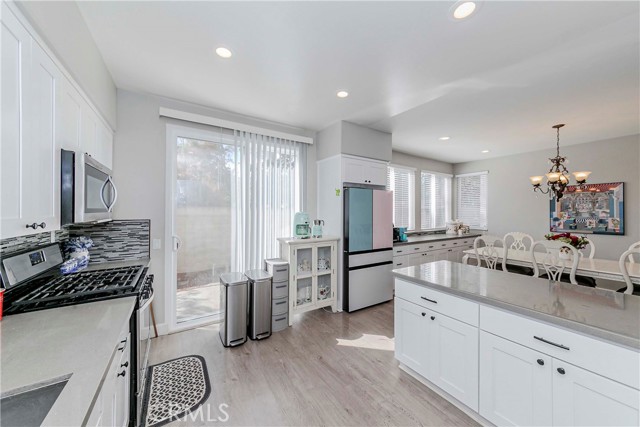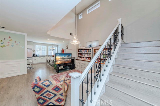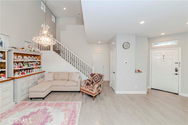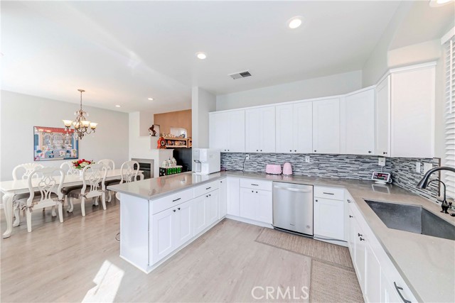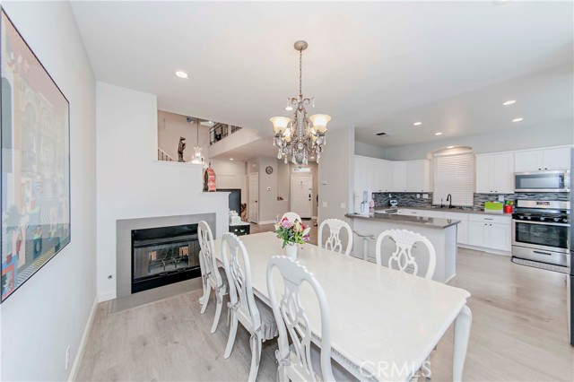 Welcome to Parkside Terrace, a highly sought-after gated community. This remodeled, two-story, free-standing home offers a stunning blend of grandeur and modern convenience. The main level begins with a dramatic two-story living space with soaring ceilings and clerestory windows for maximum light. You'll love the double-sided fireplace, which provides warmth and ambiance to both the gathering room and the dining area. The bright, open-concept kitchen is a chef's dream, showcasing crisp, white shaker-style cabinetry, a contemporary grey countertop, and a striking linear mosaic tile backsplash. This space includes a stainless steel dishwasher and an undermount sink and is defined by recessed lighting, with an elegant chandelier highlighting the adjacent formal dining area. The versatile upstairs includes a primary bedroom, two good-sized bedrooms, and a flexible bonus room ideal for an office or media center. The primary suite is a true retreat with a walk-in closet and a luxurious bathroom featuring a separate walk-in shower, double vanity, and a private toilet. The backyard offers a relatively private, low-maintenance enclosed space, surrounded by a wooden plank fence. truly move-in ready haven! This home has been beautifully and thoroughly remodeled, featuring a designer-inspired interior and, most importantly, 2024 redone plumbing system throughout