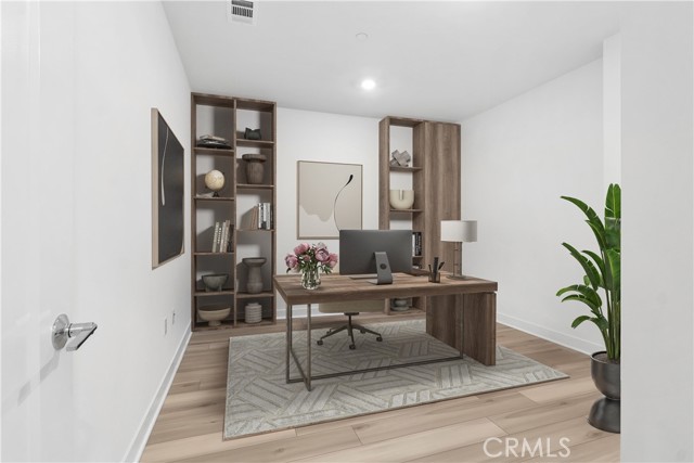 This newer, upscale one-bedroom plus den, two-bathroom residence blends modern luxury with urban convenience in the vibrant Lexington Central Park West community. The open-concept layout showcases a gourmet kitchen with GE appliances, a spacious island perfect for casual dining or entertaining, and a bright living area framed by floor-to-ceiling windows that bathe the space in natural light. Enhancing the lifestyle, the home features an upgraded HVAC system with advanced air filtration and a reverse osmosis filter with UV light unit. Positioned away from the traffic along Jamboree Road, the residence offers a quieter interior location and an oversized private patio that creates a seamless indoor-outdoor living experience—ideal for relaxing or hosting gatherings. The primary suite includes a spa-inspired ensuite with a large vanity, soaking tub, and glass-enclosed shower. A versatile den easily transforms into a home office or guest room, complemented by a second full bathroom for added convenience. Throughout, laminate flooring enhances the home’s warm, contemporary style. Residents of Lexington Central Park West enjoy an impressive collection of resort-style amenities. At the center of the community is an expansive 8,000 sq. ft. clubhouse and recreation center, paired with a junior Olympic–sized saltwater pool, three outdoor spas, and private cabanas for lounging. Wellness and recreation options include a state-of-the-art fitness center, outdoor half basketball court, and pickleball court. For social gatherings, residents can take advantage of outdoor fireplaces, BBQ grills, and flat-screen TVs, while fun touches like foosball and ping pong tables create a vibrant community atmosphere. A gated dog park, outdoor workspaces, and EV charging stations further enhance convenience and lifestyle. Located in the heart of Irvine, this home is just minutes from UCI, John Wayne Airport, world-class shopping, dining, and beaches—offering the perfect blend of comfort, convenience, and resort-inspired living.