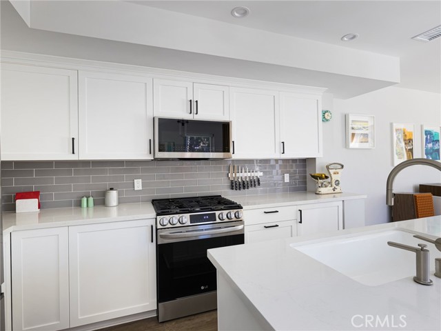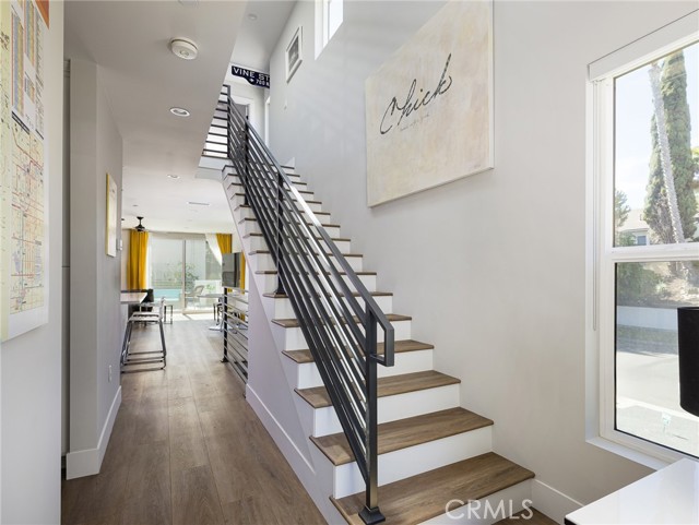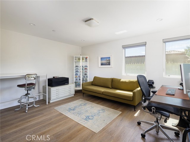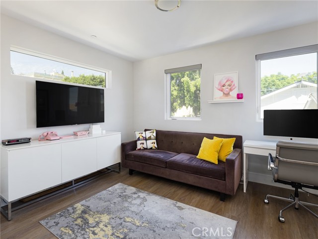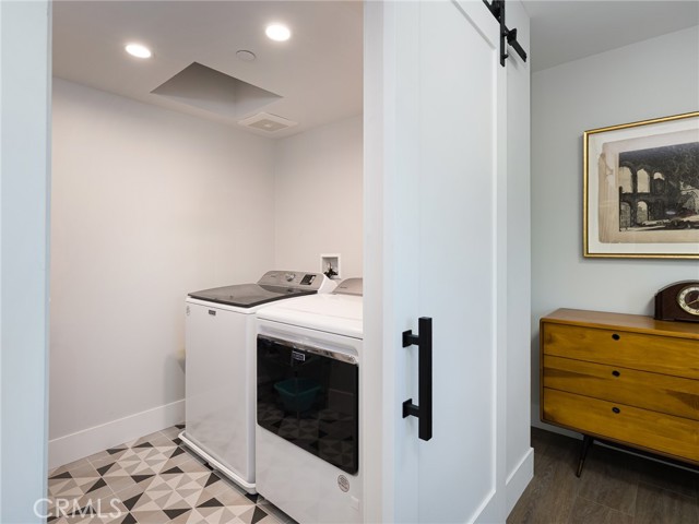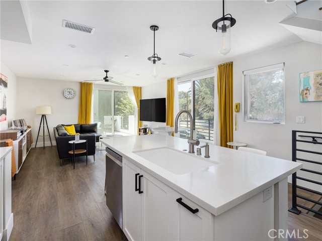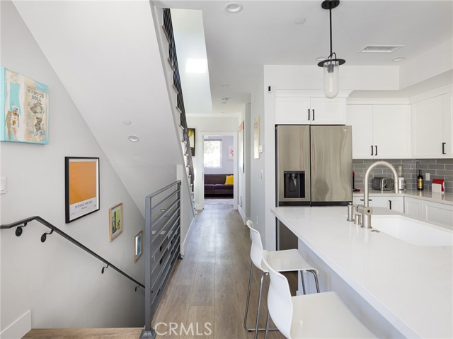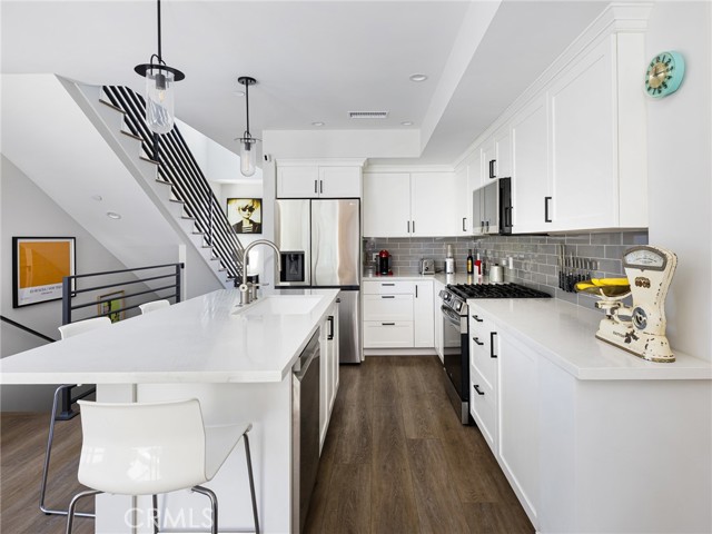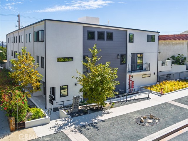 A True Gem of San Pedro! This one-year-old, modern architect-designed front unit in a 6 unit townhouse complex lives like a single-family residence. Located minutes from the ocean in Vista Del Oro and a short walk to Averill Park, it offers nearly 2,000 sq. ft. of modern living, filled with lots of natural light and palm tree views. Upgrades include premium stainless steel smart appliances, quartz countertops, luxury vinyl plank flooring, recessed LED lighting, hallway skylights, tinted windows, luxury touch-less faucets, a fire sprinkler system, newly installed premium roller shades, and it comes with with high-end washer and dryer set. The open-concept kitchen and living area flow seamlessly to a large private patio—perfect for entertaining or barbecuing, and includes an additional front-side balcony. The home is also equipped with a wired high-speed Ethernet network, ideal for remote work, or streaming. The private, finished tandem two-car garage includes an EV charging outlet, polished concrete floors, a utility sink, and custom shelving, with natural light from a side window—providing plenty of storage and the perfect setup for a workshop. This home is close to the Pacific Ocean, Cabrillo Beach, shopping, dining, and the vibrant San Pedro arts community. Just minutes from the upcoming West Harbor waterfront with its amphitheater, Ferris wheel, and world-class events. Don’t miss this turnkey home, offering the best of modern and coastal living. See Supplement for complete Floor Plan.