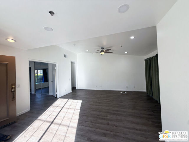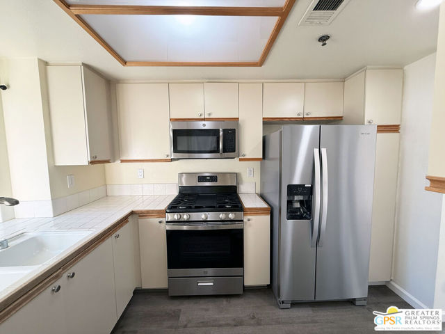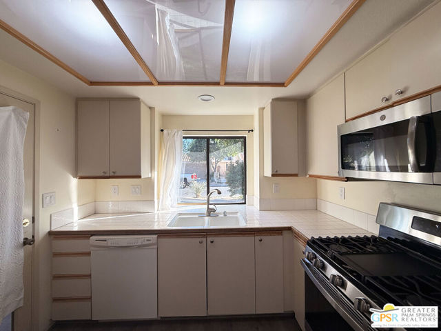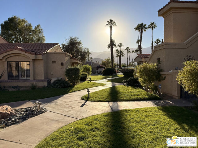Experience resort-style living at its finest in this move-in-ready, rare single-story condo located within the coveted Cathedral Canyon Country Club. Perfectly situated between Palm Springs and Palm Desert, this beautifully updated 2-bedroom, 2-bath residence offers the ultimate blend of comfort, sophistication, and desert charm. Step inside to discover a freshly renovated interior featuring smooth, popcorn-free ceilings, new recessed lighting, modern ceiling fans, all-new outlets, and stylish new flooring and baseboards. The kitchen gleams with brand-new stainless steel appliances, making it a joy for everyday living or entertaining. Step outside to your private patio and take in breathtaking mountain views - the perfect backdrop for morning coffee, al fresco dining, or sunset cocktails. Residents of this beautifully maintained community enjoy access to sparkling pools and spas, tennis courts, an 18-hole golf course and clubhouse all set against the dramatic San Jacinto Mountains. Enjoy peace of mind with an HOA that covers landscaping, exterior maintenance, roof, pools/spas, and security gates. The community is pet-friendly, allowing up to three pets per household. Schedule your private showing today and fall in love the moment you arrive.