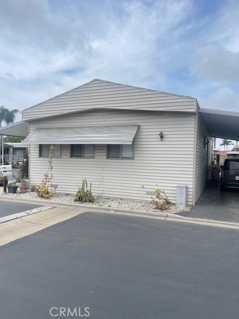 55 OVER COMMUNITY - This mobile park home is for 55 and over. Very well maintained and the park has its own community club house, pool and guest parking. You would love the serene neighborhood and its cleanliness. It comes with 2 bedroom and 2 bath, 2 carport parking, a walking closet or you can used it as an office or a small bedroom. Laundry room, dining, kitchen, and living room. Steps into the wide balcony/patio and place some chairs to watch the Disneyland fireworks and or the Army Based fireworks during holidays. Very welcoming as Sellers redid the floor, repainted the kitchen, dining room, living room and all the bedrooms. Very clean. Seller " selling it as is".