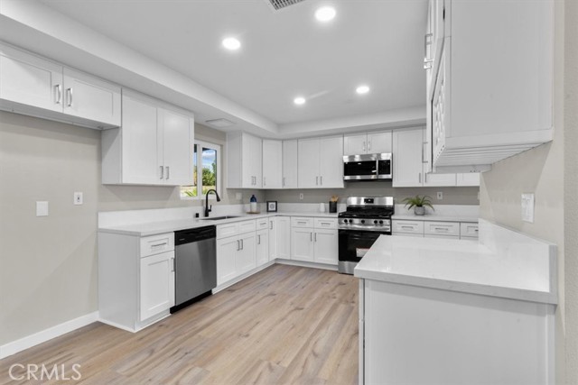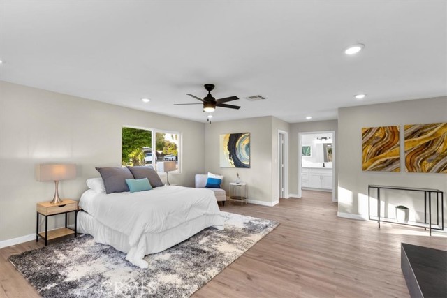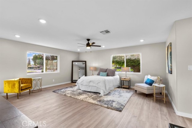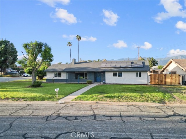 Fully Remodeled Single-Story Rialto Pool Home! This beautifully updated ranch-style home sits on a generous corner lot and offers four bedrooms and three full bathrooms, including a spacious primary suite and a second en suite bedroom that’s perfect for guests or multi-generational living. Step inside to a modern, open interior featuring new dual-pane windows, high-quality laminate flooring, fresh fixtures, and a reimagined kitchen with new cabinetry, quartz countertops, stainless steel appliances, and plenty of prep space. The kitchen flows seamlessly into the dining and living areas, creating an inviting space for entertaining or relaxing. The primary suite is a true retreat, complete with his-and-hers walk-in closets, a cozy fireplace, and a spa-like bathroom with dual vanities, a soaking tub, and a separate shower. From the dining area, a new sliding glass door opens to a covered patio that overlooks your own private backyard with a sparkling pool and spa. One secondary bedroom includes its own beautifully upgraded bathroom, while the remaining bedrooms offer flexibility for a home office, gym, or additional family members. The backyard is designed for enjoyment, with a spacious patio and plenty of room to entertain under the sun. The home also includes a 15-panel solar system with a low assumable lease, helping reduce energy bills year-round. Located in the Rialto Unified School District, this home also offers convenient access to shopping and dining, including nearby favorites at Renaissance Marketplace like CAVA, California Fish Grill, and Norms, along with everyday essentials like Target and Ross. With stylish upgrades, thoughtful finishes, and a resort-style outdoor space, this move-in ready home has everything you’re looking for. Schedule your showing today!