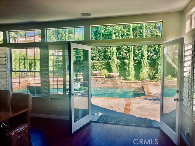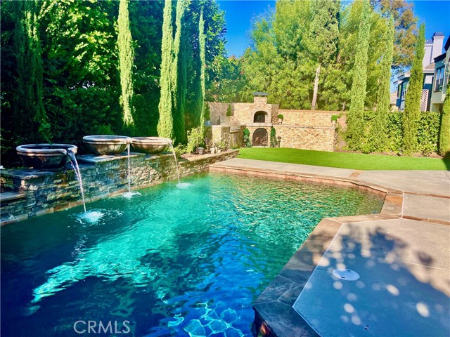 GORGEOUS BACKYARD!Perfect for entertaining! Picture a backyard oasis on a cut-de-sac in prestigious Moulton Ranch. This popular Brock Estates Floor plan welcomes you through a double door entry and greets you with a grand entry, curved stairway, and soaring ceilings. A fabulous Master Suite reminds you of a fine resort. A dual sided fireplace warms the coolest Southern California nights, whether in the over sized tub or sitting fireside in the master suite retreat. The fabulous walk-in-closet will delight you, and your wardrobe. There is also a private balcony overlooking your resort-like backyard. Upstairs secondary bedrooms have their own ensuite bathrooms. The upstairs is completed by a Bonus room. The main floor bedroom is graced by a walk-in closet and is currently used as an office. The Galley Kitch is huge, topped with granite counters, upgraded with stainless appliances, overlooks the spacious Family Room, Fireplace and beautiful backyard. The backyard starts with French Doors opening from the Dining Room, Family Room, and Breakfast Nook. Beautiful stacked stone enhances the fountains and pebble finished pool and spa. LUSH LANDSCAPING ENHANCES YOUR SECLUDED BACKYARD EXPERIENCE. MOULTON RANCH is conveniently located close to Mickey Hayden Stables, transportation, including the 73 Toll road, local airports, and freeways. Shopping and restaurants are never too far away. World famous beaches are just down the road as well. Come discover MOULTON RANCH.
