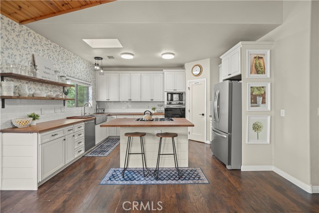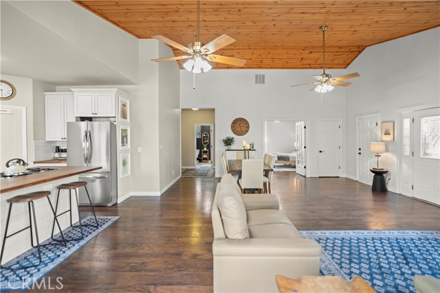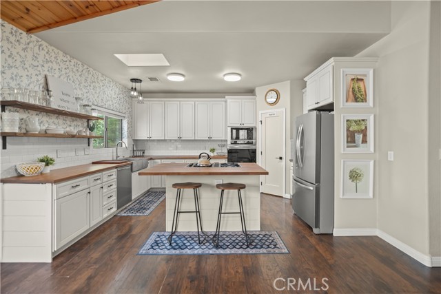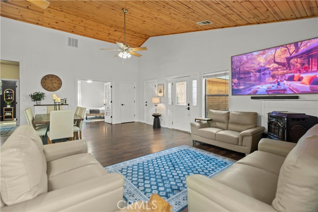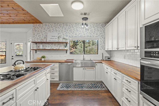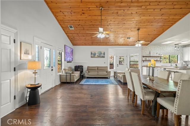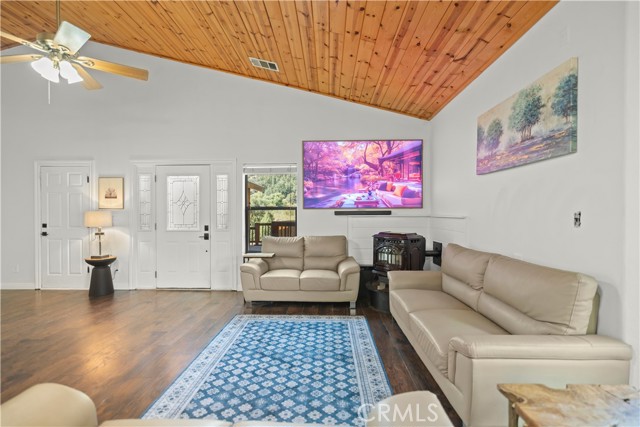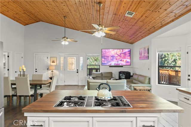 Escape to your perfect mountain sanctuary in the highly desirable Pine Mountain Club (PMCPOA) community. This beautifully updated, move-in-ready home offers a blend of rustic charm and modern convenience, providing the ultimate year-round retreat. This spacious residence features 3 bedrooms and 2 bathrooms, encompassing 1,827 sq. ft. of living space on a generous 10,412 sq. ft. lot. The interior boasts an open-concept living area with soaring vaulted wood-plank ceilings and rich wood flooring, creating a warm and inviting atmosphere. The gourmet kitchen is a chef's dream, complete with butcher block countertops, bright white cabinetry, and a full suite of stainless steel appliances—including the refrigerator, dishwasher, and microwave, all of which are included. The home also comes equipped with the washer and dryer in a dedicated laundry room. Step outside to embrace the natural beauty of the area. The property offers stunning mountain views and features a spacious deck, perfect for outdoor dining and entertaining. The large, private backyard is ready for your vision, complete with a greenhouse with potential for gardening enthusiasts. The property also includes a convenient two-car garage. Living in PMCPOA provides a hassle-free lifestyle with essential year-round services, including 24/7 security patrol, trash and recycling collection, road maintenance, and snow removal. For added peace of mind, Kern County Fire Station 58—staffed with paramedics and equipped with a helipad—is located within the community, ensuring prompt emergency response when needed. Blending custom comfort, excellent community amenities, and the breathtaking natural beauty of Pine Mountain Club, this home is a must-see. Don't miss it, schedule your showing today!