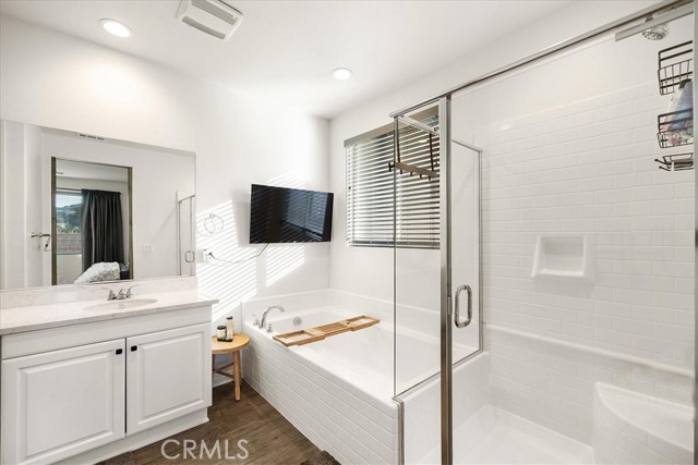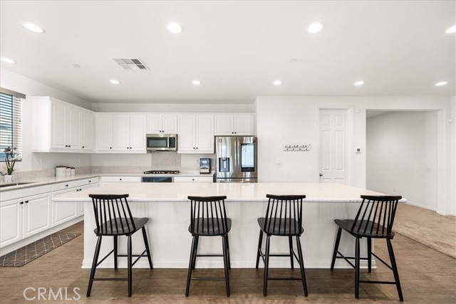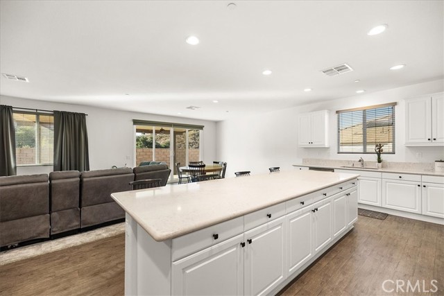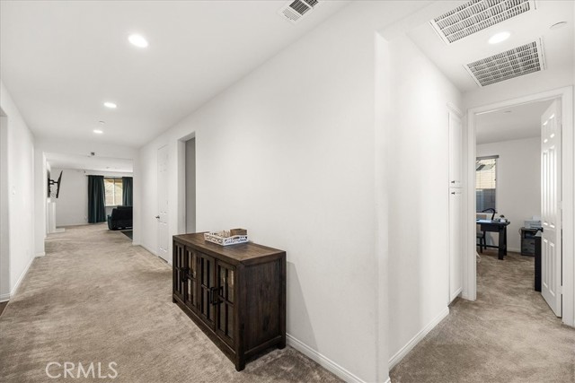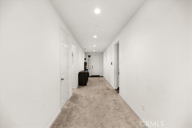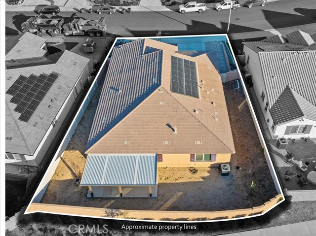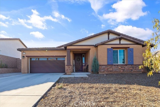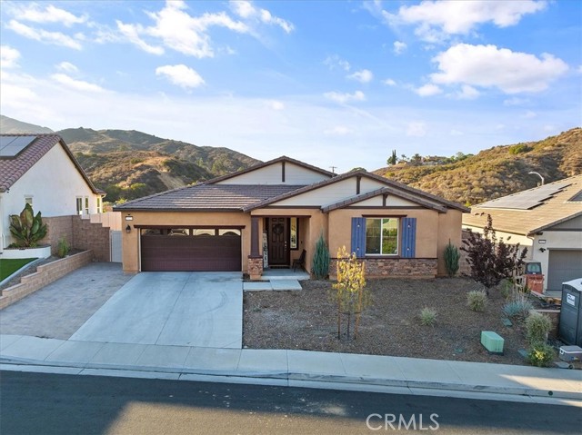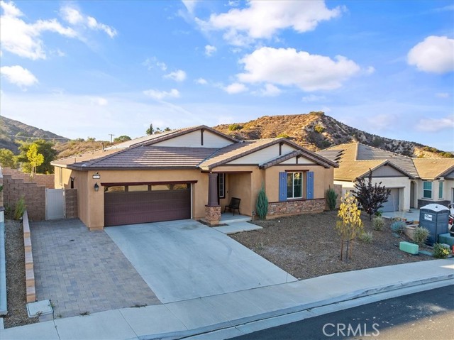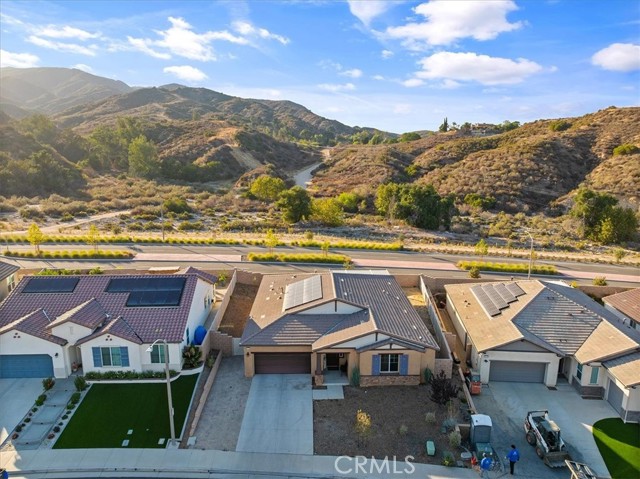 Welcome to this stunning Single-Story residence offering 2,514 sq. ft. of thoughtfully designed living space with 4 Bedrooms, 3 Bathrooms, perfectly blending functionality and luxury. With no neighbors behind and stunning views of the local mountains, this home has a peaceful feeling. Three of the Bedrooms are located in the front of the home, two of which are connected by a Jack and Jill bathroom, and one with its own hallway bathroom providing comfort for family or guests. The Primary Bedroom Suite is tucked away at the back of the home offering added privacy. The Primary suite feels like a peaceful retreat with a custom barn door leading into a spa-like bathroom featuring dual sinks, a walk-in shower, an oversized soaking tub, separate toilet room, and a spacious walk-in closet with custom shoe shelving. The heart of the home is the Gourmet Kitchen boasting white cabinetry, Carrera marble countertops, an extended center island/countertop, stainless steel appliances, a 36-inch commercial range top, and a professional-grade stainless steel sink. It is OPEN to the Family Room and Dining Area and promotes family gatherings and entertaining. There is a Good size walk-in Pantry for food storage. Practical upgrades include a three-car Tandem Garage equipped with a tankless water heater, 240V EV charging station and two 1,500-lb overhead storage racks. The laundry room is indoors, and comes with built-in shelving. PAID OFF SOLAR through SunRun and NO HOA are MAJOR added benefits! The Whole house fan helps cool off the home quickly and efficiently during the warmer months. There is ample room for all your "toys" as this property features an extended driveway with vehicle-rated pavers designed for vehicle or boat parking at the Front Left side of the home. Enjoy California outdoor living with an extended concrete patio, alumawood patio cover, and ceiling fans with lights. Use your imagination to design the rest of the Back yard to your own desires. This home checks every box with its combination of modern elegance, thoughtful upgrades, Paid Off Solar and No HOA.