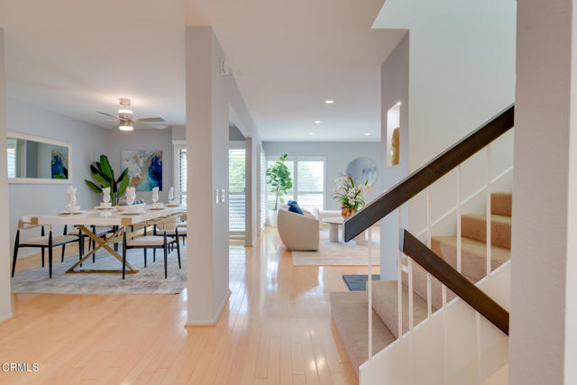 A rare opportunity awaits you in the highly desirable Portola Terrace community of beautiful Monterey Hills. A Los Angeles hidden gem with gorgeous views, a serene, peaceful setting with scenic rolling hills. Convenient to DTLA, Keck USC Medical Center, South Pasadena, Pasadena, all of NELA (Highland Park, Eagle Rock etc...) museums, restaurants, cafes, farmer's markets, Ernest E. Debs Park with hiking trails that lead to hilltop views, a lake and to all major freeways.This tri level townhome shares one wall and feels like a single family home. Upon entry from the main level you are greeted with an open floor plan- a living area with views, a stunning modern gas fireplace, recessed lighting, hardwood flooring throughout, adjacent to the open dining area, two access points to the balcony with natural lighting and wood shutters. The balcony offers a relaxing sanctuary to enjoy a morning cappuccino or watch the sunset view. The family room opens up to the modern kitchen featuring Silas counter top, Blanco granite sink, stainless steel appliances, Bosch cooktop and solid wood cabinetry.The remodeled contemporary 1/2 bath powder room completes the main level. Upstairs offers 3 bedrooms, a primary spacious bedroom ensuite with beautiful views, 2 closets (one walk in), remodeled bathroom features Fleming lighted mirrors, dual sink, quality wood cabinets & drawers, custom shower tiling and plenty of storage. 2 additional bedrooms offer great lighting and share the chic modern bathroom off the hallway. The hallway/linen cabinets have ample storage with lighting and quartz countertop. Lower level has a finished bonus room w/ closet, a laundry space for a washer and dryer, cabinet and storage closet. Direct access to an oversize two and a half cars garage, plenty of storage cabinets. A full house water filtration system, central air & heat and wired security system.As you step into the private and luxurious resort-like backyard/patio you will enjoy the privacy of the hills and nature, great space to entertain dining al fresco and bbq's. The fancy Solara adjustable patio cover and 2 ceiling fans will surely keep you cool in the summer or can offer more sunshine to meet your preference. Community sparking pool, spa and lounge chairs under a shady trellis. This home shows true pride of ownership, quality workmanship, well maintained, immaculate move-in condition and with all the upgrades and modern amenities for today's comfortable living!
