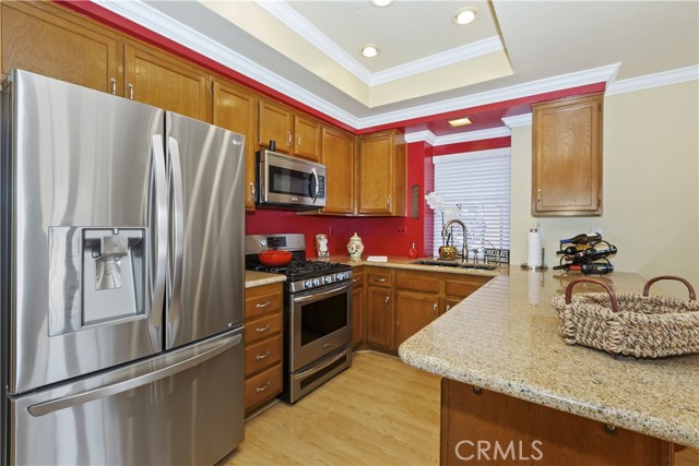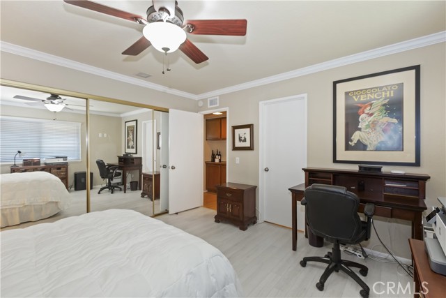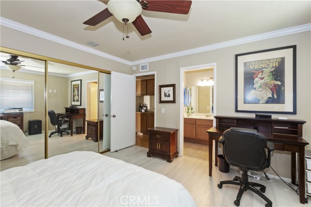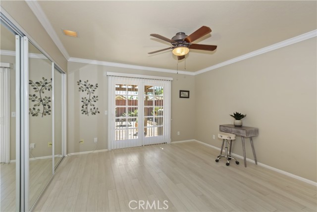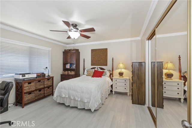 Don't miss this beautifully maintained home in the wonderful Terra Vista neighborhood of Rancho Cucamonga! Step into the formal living room, highlighted by a cozy fireplace with tile hearth and classic mirrored mantel. The upgraded kitchen features a walk-in pantry, granite countertops, stainless-steel appliances, an updated sink & faucet, recessed lighting, and crown molding that continues into the dining area. The master bedroom suite includes a large closet, sliding door access to the back patio, and a private bath with tub/shower combo, while the secondary bedroom connects to a Jack-and-Jill bath with a convenient walk-in shower. Both bedrooms are enhanced with crown molding, mirrored closet doors, and ceiling fans. There’s a dedicated indoor laundry area just off the kitchen. Outside, enjoy great curb appeal with the charm of drought-tolerant landscaping and a welcoming front porch. The backyard is designed for easy living with attractive brick and stone pavers, a covered patio, and well-appointed planter beds with automatic sprinklers in both the front and back. This home is ideally located near parks, shopping, and entertainment—including Victoria Gardens, the Lewis Family Playhouse, the Quakes Stadium (LoanMart Field), Ontario Mills, and more—with quick access to the 15, 210, and 10 freeways for a convenient commute. Come see it today—you’ll be glad you did!