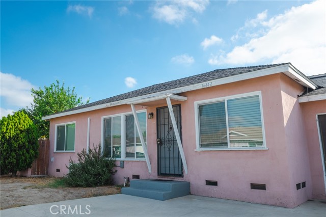 Landlord no more! Nice Family home! Move in ready! This 3 bedrooms, 1 Full bath home has a NEW ROOF, installed in 2023. Nice kitchen with appliances. Vinyl flooring throughout, floating shelves, air conditioning/heating units. Clean, bright and airy. Attached double garage, with washer and dryer, gated yard, nice backyard with grass, patio and block walls, plenty of off street parking. Lots of room for an addition or an ADU on the additional side yard. Near the school and park. Don't miss out on this one!