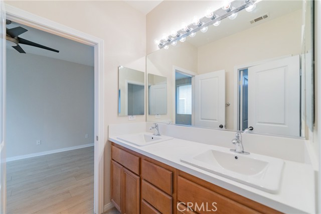 This beautifully designed floor plan is located in the highly desirable Sycamore Creek Community, with excellent school ratings! This generously sized 6-bedroom, 3-bath home feels larger than its actual square footage, thanks to its well-thought-out layout that maximizes functionality. The open floor plan offers various lifestyle options, such as a home office, workout room, or accommodations for multiple occupants—there are so many possibilities! As you enter, you’ll find a formal dining area next to the stairs, alongside a spacious formal living room or multi-purpose room. The open kitchen flows into a large family room with a cozy fireplace. There is 1 bedroom and 1 bathroom with a shower conveniently located downstairs, as well as ample storage space in the laundry room, which features a large sink. The enormous master bathroom and double-sized walk-in closets offer plenty of storage room. This home is light and bright with additional storage closets and cabinets throughout. Recent updates include a fresh interior designer paint color, new luxury flooring, a new air conditioning unit, and a new water heater unit. The low-maintenance front and backyard feature artificial turf and desert plants, allowing for significant savings as there's no need to hire a gardener. The property also includes a three-car garage and a long driveway. The community has low HOA fees and offers a range of amenities, including a clubhouse, entertainment area, pools, a fitness center, walking trails, parks, and sports courts. Plus, it’s conveniently located near several shopping centers. With so many great features, this home is a must-see!