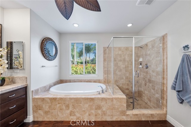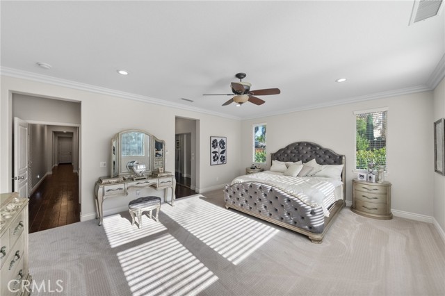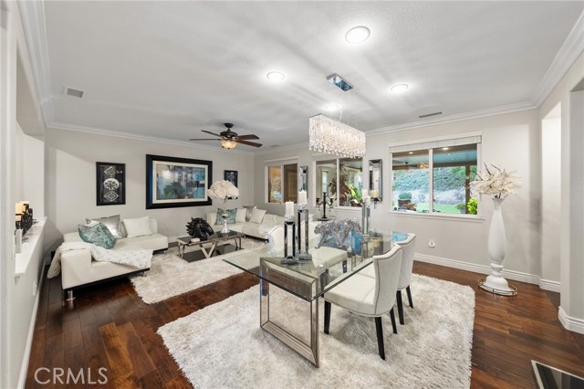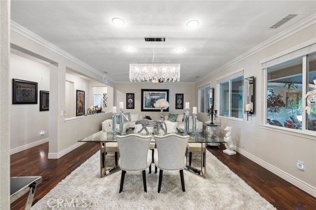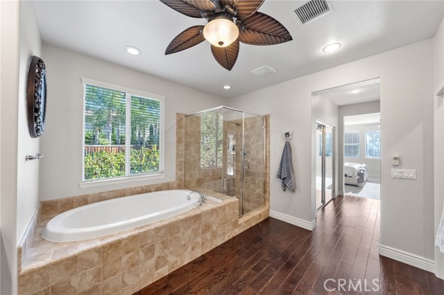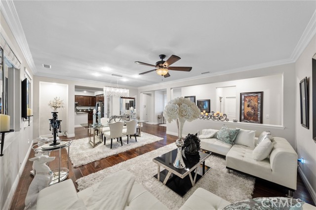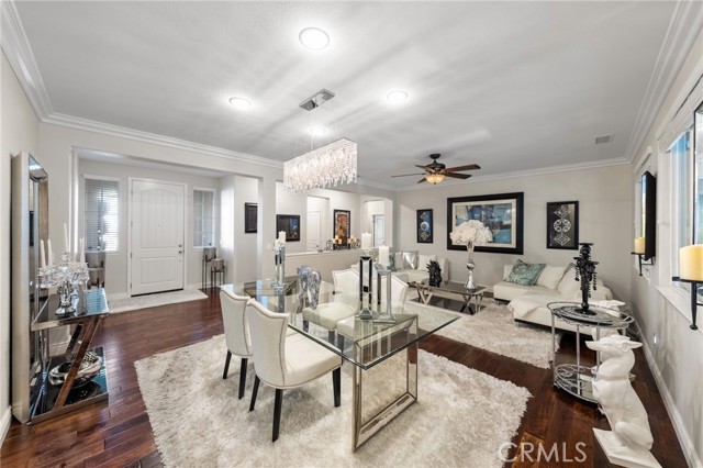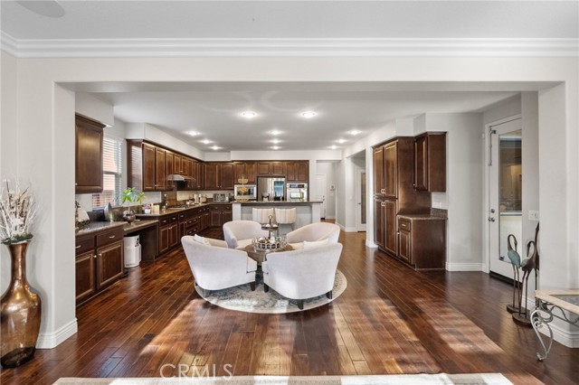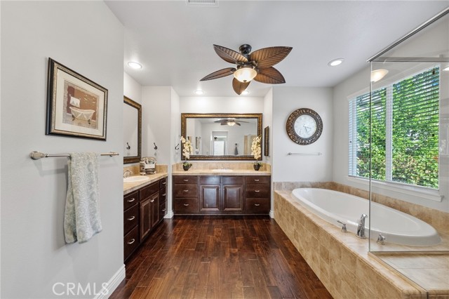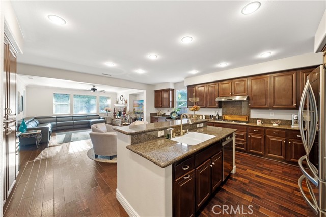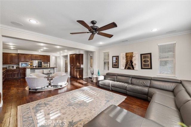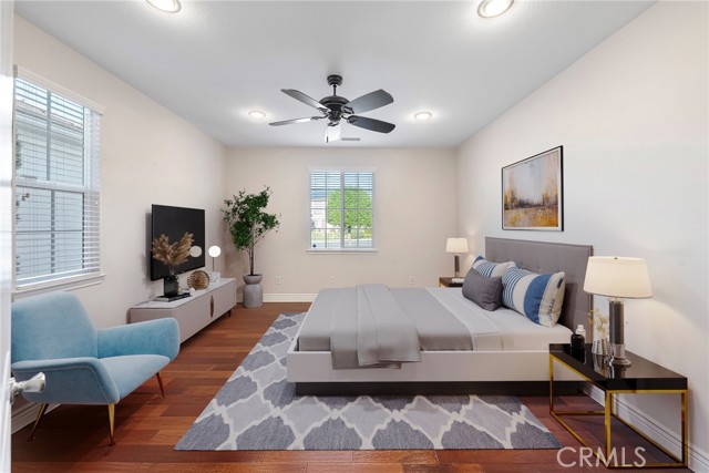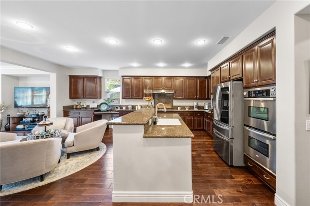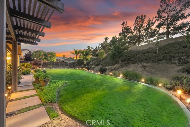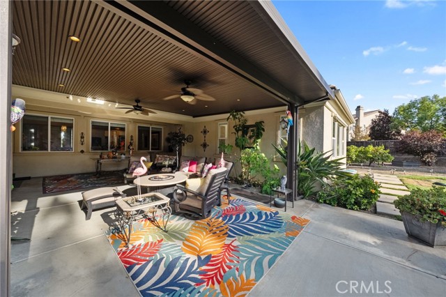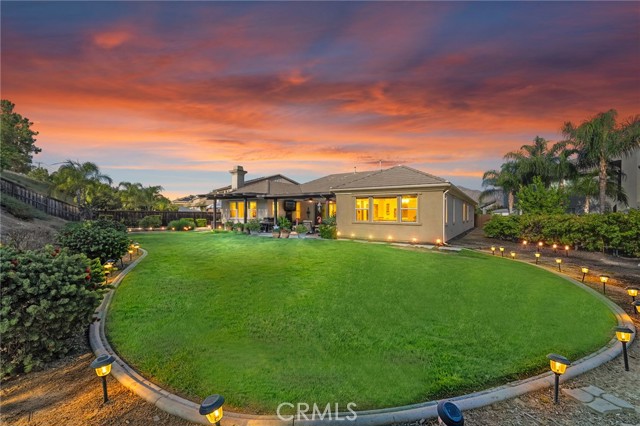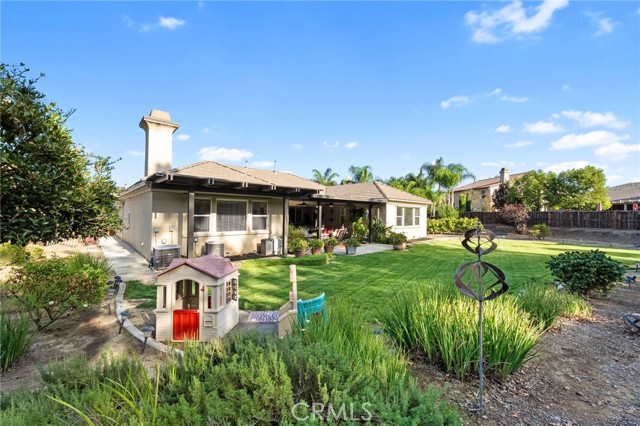 Welcome to a gorgeous, turn key single story home on an oversized lot in the desirable community of Heritage Lake. Step inside to discover the open concept living room and dining room offering an abundance of entertaining space. The gorgeous eat in kitchen aims to please with a large center island showcasing granite counter tops and plenty of cabinet space, which is adjacent to the family room featuring built in surround sound and a cozy gas fireplace. The four bedrooms are configured with ceiling fans, can lights and provide plenty of natural light, while the two full bathrooms include dual vanities, showers, and bath tubs. Additional features include a half bathroom and dedicated laundry room with separate two car and one car garages. Venture out back and explore a private, sprawling backyard consisting of a large covered patio with ceiling fans and can lights, a fire pit plumbed into the home's natural gas, a water fountain, a large lawn, and your own producing vineyard and fruit trees. Conveniently located minutes from the I-215 freeway as well as an abundance of shopping and dining with schools in the neighborhood, just about everything you need is a short distance away. Residents of this beautiful neighborhood can take advantage of the numerous walking paths and sports facilities, as well as the community pool, splash pad and club house. Seize the opportunity to make this beautifully maintained home your own and schedule your private showing today!