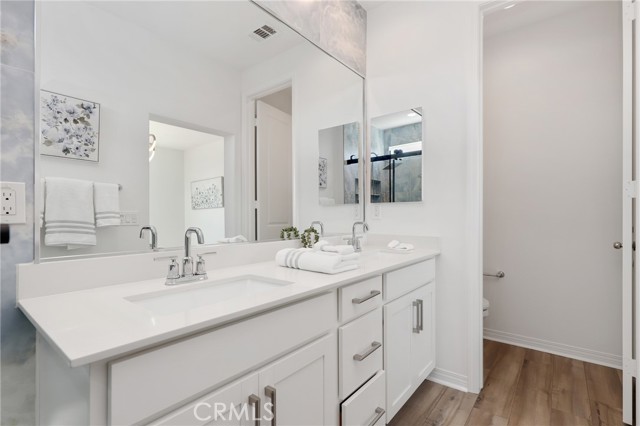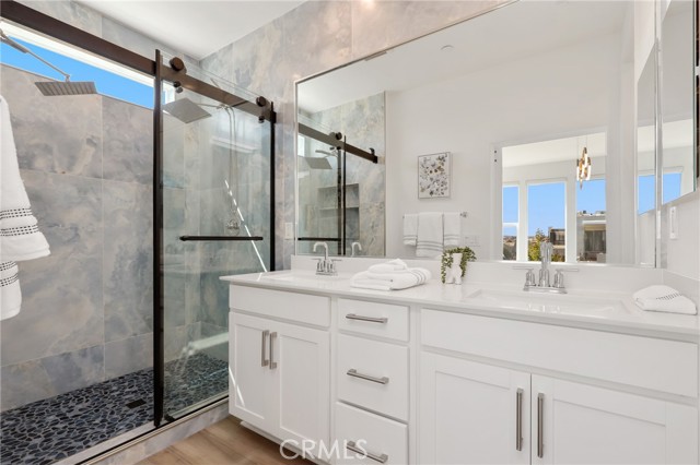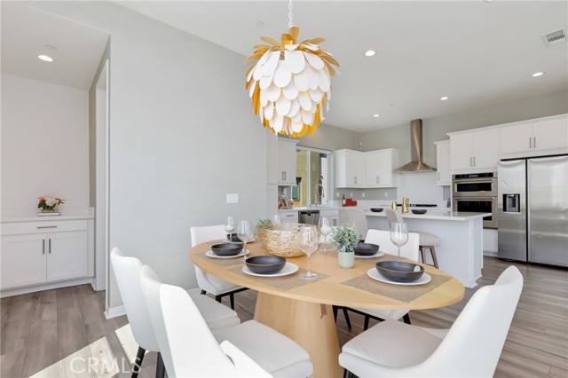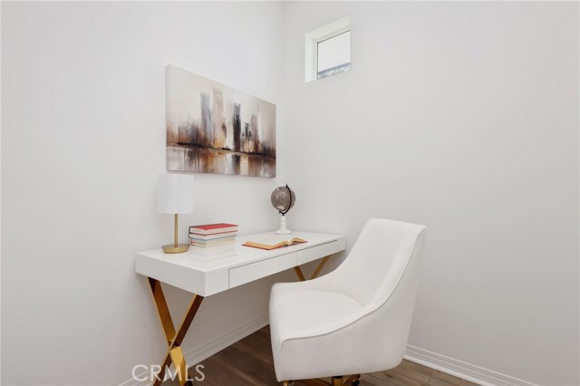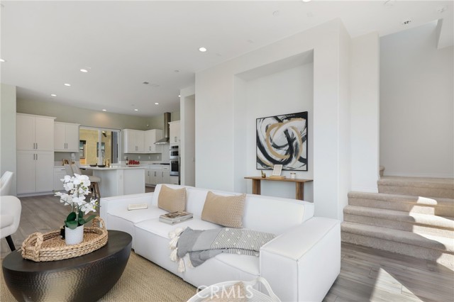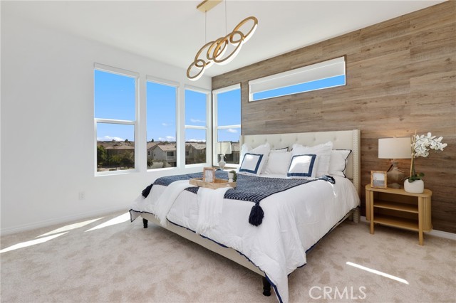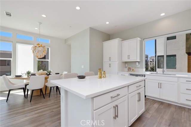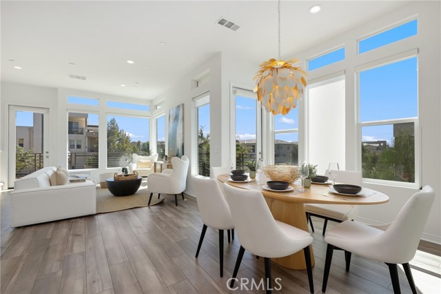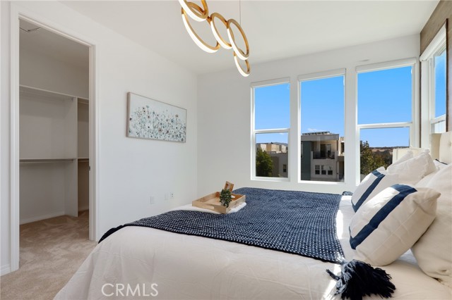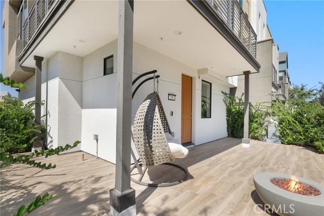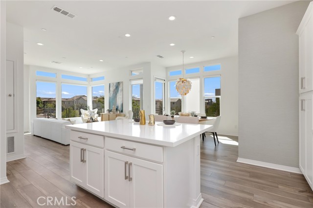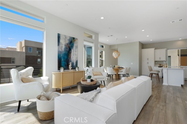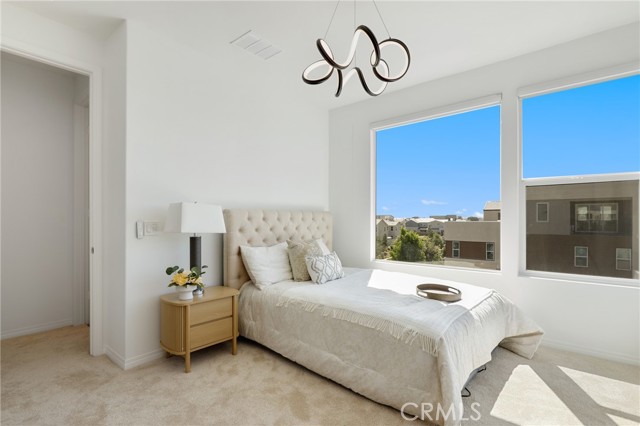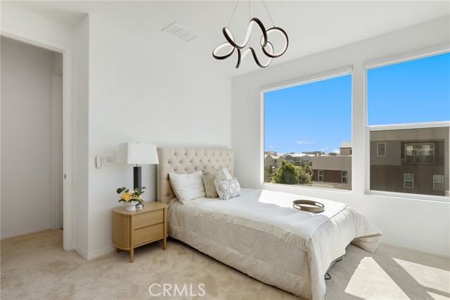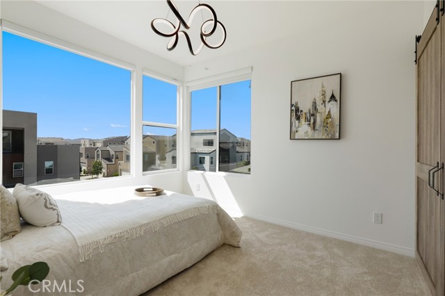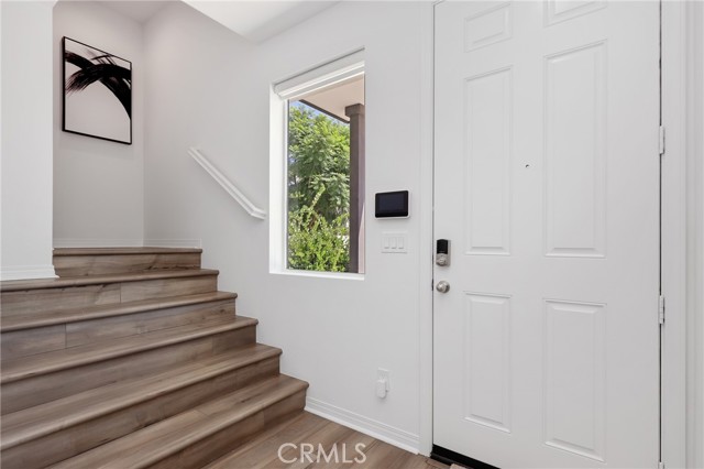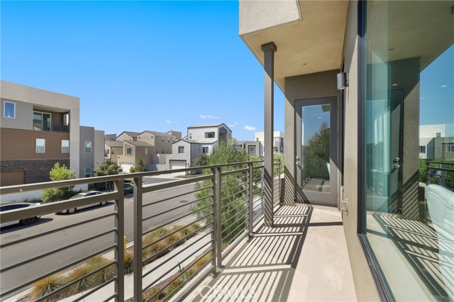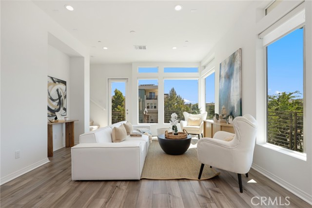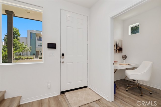 Built in 2022, this remarkable corner residence harmonizes modern design, thoughtful functionality, and refined comfort. Bathed in natural light from its expansive windows and ideal corner positioning, this home radiates warmth, openness, and timeless elegance. Upon entry, you’re greeted by a welcoming foyer that features a small closet, direct garage access, and a versatile office/workshop—a perfect small space for remote work or personal projects. The staircase to the main living level sets a sophisticated tone from the very start. The second floor serves as the heart of the home, featuring an open-concept kitchen, dinning, and living area adorned with recessed lighting, remote-control curtains, and large windows that fill the home with abundant natural light. The chef’s kitchen is beautifully appointed with a double-door refrigerator and freezer, stand-alone dual ovens, a built-in stovetop, and custom cabinetry, offering the ideal combination of style and convenience. Seamlessly extending your living space, the wrap-around patio, accessible from the second floor, creates a tranquil indoor-outdoor experience perfect for entertaining or unwinding in the California sunshine. The third floor is dedicated to family comfort and privacy, featuring three spacious bedrooms, each enhanced with a modern designer light fixture that complements the room’s elegance and character. The primary suite stands as a luxurious retreat, complete with a custom-designed primary bathroom showcasing dual showers and exquisite finishes, along with a walk-in closet featuring custom-built cabinetry for superior organization and beauty. A full laundry room on third floor with washer, dryer, and built-in cabinetry adds ease and efficiency to daily living. Freshly updated with new paint and plush carpeting, this home reflects meticulous care and true pride of ownership. Ideally located within walking distance of Solis Park K–8 School and Portola High School, it offers the perfect balance of elegance, convenience, and family-oriented design. This 2022-built residence is a rare gem—where modern sophistication, natural light, and everyday comfort come together to create a home you’ll love coming back to every day.