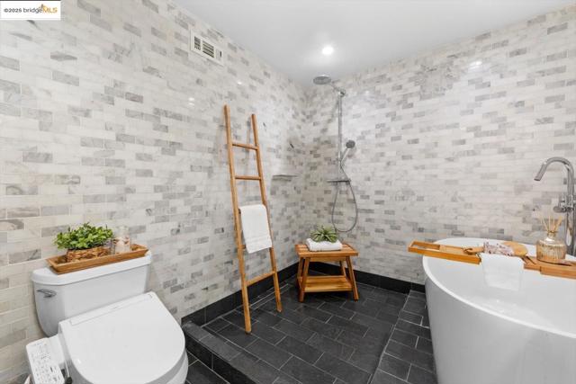 Private Redwood Heights retreat in a superb location. Enjoy the best this sought-after neighborhood has to offer: amazing micro-climate; families enjoying Avenue Terrace Park; dog walkers & bicyclists galore; minutes to 13 & 580; nearby Redwood Regional Park; close to shopping & Montclair's iconic village vibe. This wonderful, updated home has many smart improvements including: updated kitchen (newer kitchen appliances, cabinets and counters, heath tile backsplash); updated bathrooms (rain shower heads, modern tile, soaking tub, bidet); ensuite primary bedroom with large dressing room and amazing, walk-in shower; electrical upgrade to 200 Amps; new hot water heater; newer roof. Enjoy the privacy, greenery, and peaceful outdoors from either of 2 large decks overlooking the backyard & your own swimming pool (recently rebuilt with a new pump and maintained weekly) surrounded by freshly installed sod, and a perfectly situated hot tub. New technology and ecological features include: owned solar system, Nest thermostat; CCS and NACS EV chargers; newer forced air HVAC system; dual pane windows; recessed LED lights throughout and designer dining room light fixture; energy efficient washer and dryer; drip irrigation; drought tolerant landscaping. Don’t miss this fantastic opportunity!