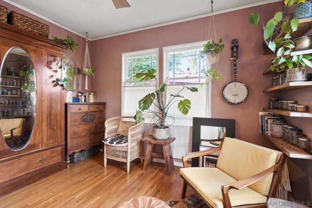 Get ready to be enchanted! This classic Spanish home sits perched on a quiet, tree-lined street just two blocks north of Adams Avenue. Set in the heart of Normal Heights, this charming bungalow recently celebrated its 100th birthday and is on the market for the first time in 20 years. Enter via a cobbled drive and terracotta steps, through an enchanting garden and terrace shaded by olive and mesquite trees. Inside, enjoy original oak hardwood floors, coved ceilings, and ample natural light. Features include: Wood-burning fireplace, restored sash windows & doors, silent ceiling fans with dimmable lights, Bosch range/oven, wine fridge, stainless steel refrigerator, abundant storage, and artistic touches throughout. The kitchen/dining area opens to a breezeway that connects to a courtyard, garage, and private garden. Outdoor highlights include a fountain, custom lounge bench, creative paving, and a new redwood fence. A private flagstone terrace, mature palms and water-efficient gardens provide an urban sanctuary. Impeccably cared for, this home showcases its original charm while boasting modern updates such as enhanced plumbing and foundation improvements. The detached garage offers a high-efficiency washer/dryer, utility sink, storage shelves and could potentially be converted to an ADU or extra living space. Located on a serene street, this home is a short walk to Adams Avenue's vibrant amenities, including bars, restaurants, shops, and parks featuring summer events and festivals. Enjoy the best of urban convenience and tranquil living in this delightful home. Just a short stroll to a host of bars, restaurants, yoga studios, hair salons, vintage clothing boutiques, coffee shops, beer and wine specialists, bakeries, plant shops, ice cream/gelato shops (one voted the best gelato in America!), and the good old fashioned corner post office. You'll love the urban yet small town feel. Summer movies in Ward Canyon Park are a treat, summer concerts in Trolley Barn Park are always a hit, and there are two annual street/music festivals on Adams Ave that you’ll be happy you don’t need to find a parking space for! Local Favorite Spots: Blind Lady Ale House - Casual craft beers and pizzas, weekly live music. Nomade - Tapas and turntable tunes. Relaxed sophistication. Bica - Portuguese inspired coffees, pastries and lunches, to go or in their outdoor space. The Ould Sod - Simple Irish pub. Best Guinness in town. Home ec - Foody, kitcheny gift shop. Stehly Farms - Small but well stocked grocers with a deli counter and outdoor seating. Kiko & Sven - Plants, clothes, children’s goodies, cards and plenty more gifty items. La Loupe - Vintage clothes, shoes and bags plus retro inspired socks, cards, sunglasses. Sukhotu Thai - Authentic Thai takeaway or eat in at their intimate restaurant. The Vibe - Breakfast/brunch every day in an airy, vibrant setting.