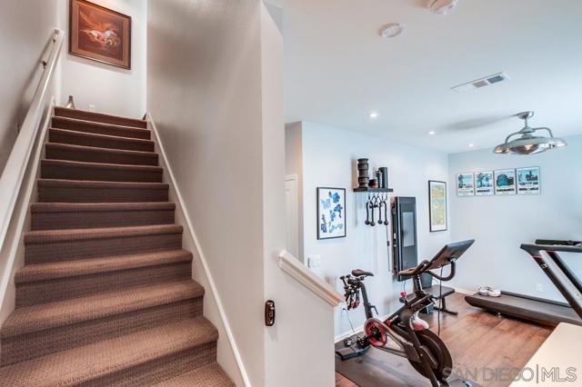 Welcome to your dream home in the exclusive La Costa Collection of South Carlsbad! This stunning townhome offers the perfect blend of modern luxury & practical living. Step inside to discover the versatility of the first floor, featuring an optional bedroom, ideal for a home office or personal gym space. On the second floor, embrace the open floor plan designed for modern living. The spacious chef’s kitchen is a culinary delight, showcasing a large island with quartz countertops, ample cabinet space with convenient pull-out shelving, & state-of-the-art stainless steel appliances. The adjacent dining area & living room, complemented by a half bath, create an inviting atmosphere for entertaining guests. Ascend to the third floor, where all three bedrooms are thoughtfully positioned, including the luxurious primary suite. Enjoy the privacy of your en-suite bathroom, the convenience of a walk-in closet, & the serenity of a private balcony. The home also features PAID SOLAR, designer lighting, shutters, custom closet organizers in all bedrooms, central heating & A/C, in-unit laundry, & paid-off solar. The attached 2-car garage offers custom SafeRack overhead storage. Outside, the front porch patio offers a perfect setting for relaxing or enjoying BBQs with family & friends. The resort-style community features a pool, BBQ area, & lush green spaces. Located within walking distance to Plaza Paseo Real’s dining & entertainment, Carlsbad library, shopping, & top-rated schools. Additionally, you’ll be just minutes from beautiful beaches, golf courses, parks, & hiking. Welcome to your dream home in the exclusive La Costa Collection of South Carlsbad! This stunning three-story, solar powered townhome offers the perfect blend of modern luxury & practical living. Step inside to discover the versatility of the first floor, featuring an optional bedroom, ideal for a home office or personal gym space. On the second floor, embrace the open floor plan designed for modern living. The spacious chef’s kitchen is a culinary delight, showcasing a large island with quartz countertops, ample cabinet space with convenient pull-out shelving, & state-of-the-art stainless steel appliances. The adjacent dining area & living room, complemented by a half bath, create an inviting atmosphere for entertaining guests. Ascend to the third floor, where all three bedrooms are thoughtfully positioned, including the luxurious primary suite. Enjoy the privacy of your en-suite bathroom, the convenience of a walk-in closet, & the serenity of a private balcony. The home also features designer lighting, shutters, custom closet organizers in all bedrooms, central heating & A/C, in-unit laundry, & paid-off solar. The attached 2-car garage offers custom SafeRack overhead storage. Outside, the front porch patio offers a perfect setting for relaxing or enjoying BBQs with family & friends. The resort-style community features a pool, BBQ area, & lush green spaces. Located within walking distance to Plaza Paseo Real’s dining & entertainment, Carlsbad library, shopping, & top-rated schools. Additionally, you’ll be just minutes from beautiful beaches, golf courses, parks, & hiking.