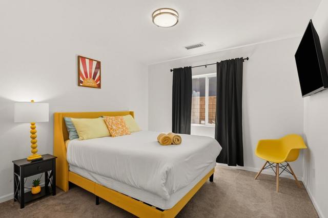 Enjoy Spacious Open Floorplan Living at Its Very Best! Take advantage of the Owned Solar in this 2022-built, energy-efficient home to keep your utility costs low. Upon entering, you'll love the grand vaulted ceilings in this highly upgraded 4-bedroom, 2-bathroom home. Kitchen features include upgraded cabinetry with designer granite countertops--an ideal space for entertaining family and hosting social gatherings. Tile flooring runs throughout the main living areas, carpet flooring in the bedrooms, and the modernized, highly upgraded bathrooms add a luxurious touch. The list of upgrades goes on and on! Enjoy expansive views of the San Jacinto Mountains from your living room, and complete privacy within your fully walled backyard. Located just two blocks from Miracle Springs Resort & Spa. You've got to see this home!