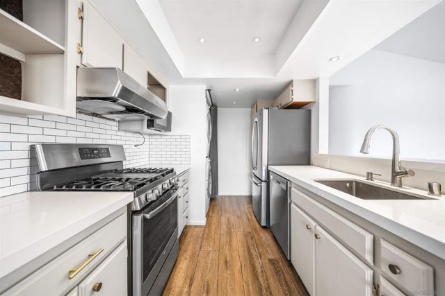 Primary location next to Penasquitos Town Center with access to Westview High School and Mesa Verde Middle School. Lowest priced 3Br 2Ba top-level condo with walking distance to the Rancho Penasquitos library branch, YMCA, shopping center, and black mountain state park. The home is a corner unit with an in-unit laundry room featuring a full-size stackable washer and dryer, vaulted ceilings, fresh paint, stainless steel appliances, quartz countertops, updated fixtures, a walk-in master closet, and a fireplace with relaxing views from the balcony. There are two available parking spaces, with one of them coming with storage. Enjoy the best schools in the renowned Poway School District, with easy access to 56 freeway and bike trail. Wonderful HOA amenities that include 4 pools, 4 hot tubs, a recreation center, BBQ areas, landscaping, and streams within the well-maintained complex. Low HOA dues and no Mello-Roos. Don't miss out on this rare gem by scheduling a viewing!