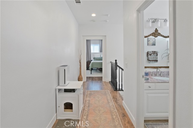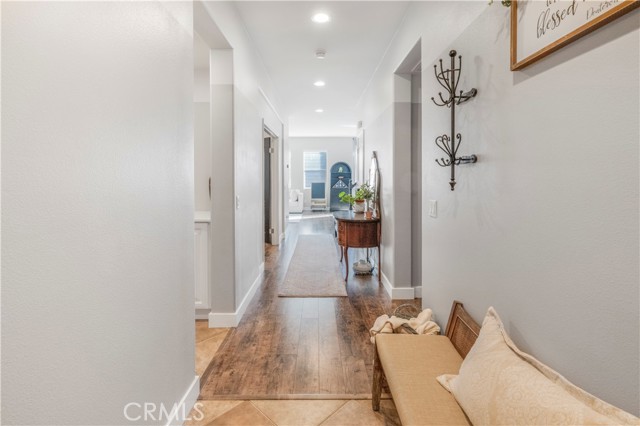Welcome to this beautifully maintained home that shows true pride of ownership. On the main level, you’ll find a thoughtfully placed guest bedroom with a full bathroom nearby—perfect for visitors or multi-generational living. The spacious laundry room offers ample storage, while a versatile bonus room with double doors can be used as an office, dining room, or extra bedroom to fit your needs. The heart of the home is the open-concept living area, seamlessly connecting the kitchen, dining, and family room. The kitchen features abundant storage, stainless steel appliances, and a butcher block island—ideal for everyday living or entertaining. Sliding doors open to the backyard, providing the perfect spot for gatherings or simply relaxing outdoors. Upstairs, the expansive primary suite offers a private ensuite bathroom with a separate toilet room and a large walk-in closet. Two additional bedrooms and another full bathroom complete the second floor. The tandem three-car garage provides generous parking and storage space, with plenty of room to create a drop zone or in-garage mudroom to keep everything organized. This home is enhanced with modern smart-home features, including a smart thermostat, garage door opener, and updated sprinkler system—all programmable and controllable from your phone. The property also includes a reverse osmosis system, delivering purified water through a dedicated sink spout and directly to the refrigerator line. A whole-house water softener adds a luxury touch—providing safer, less harsh water throughout the home. As part of the Fairway Canyon community, residents enjoy access to beautifully maintained common areas, a refreshing pool, high-speed internet, and a full-size gym less than a mile away. This home is the perfect blend of comfort, technology, and community—don’t miss the opportunity to make it yours!