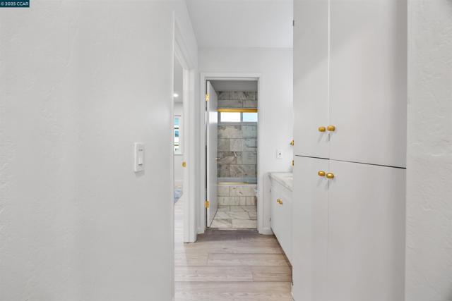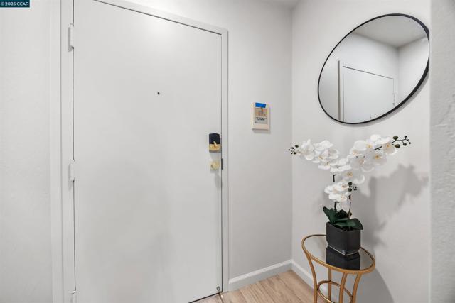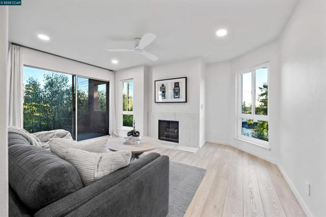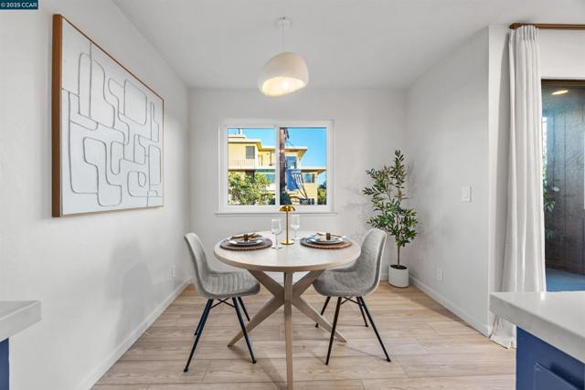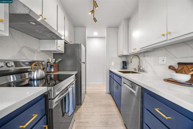 Step inside this beautifully updated top-floor condo! This sun-drenched, light and bright 1 bed, 1 bath condo showcases luxury throughout and seamlessly blends comfort with style. Experience elegance in every detail—from the exquisite wabi-sabi ceiling light to the stunning gold fixtures, LVP floors that add a touch of glamour. Delight in the modern kitchen featuring quartz countertops, redwood maple veneer cabinetry coated in captivating white and blue hues, and top-of-the-line stainless steel appliances, perfect for inspired cooking. The fully renovated bathroom is a spa-like retreat with a lighted mirror and sleek gold finishes, complemented by electric portable heaters for cozy comfort. Ambiance is effortlessly controlled with dimmers on the warm lighting throughout the unit. New efficient windows flood the space with natural light while ensuring tranquility. Step onto your private balcony to savor your morning coffee or unwind as you admire the neighborhood views. Enjoy secure parking in a gated underground garage, with easy access to BART, Lake Merritt, restaurants, parks and shopping. This stunning condo is a rare gem that perfectly balances modern luxury and practical living — a must-see opportunity to make your dream home a reality.
