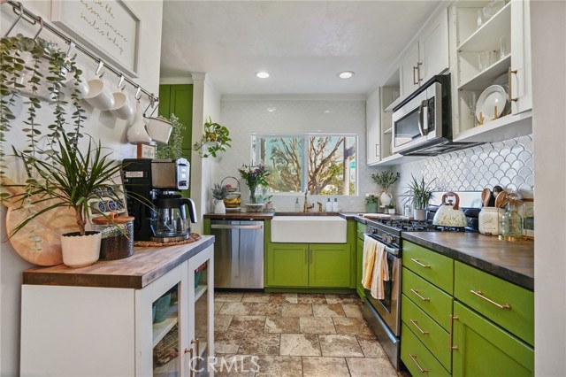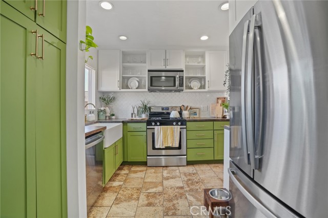 Welcome to 4037 E 7th Street, a beautifully updated home blending classic Long Beach character with thoughtful modern upgrades. Step inside to find an inviting open layout highlighted by laminate flooring, recessed lighting, and double-pane windows that fill the space with natural light. The fully remodeled kitchen is a true showpiece, featuring Venetian plaster walls, a farmhouse sink, butcher block countertops, and a custom-built pantry for ample storage. All appliances are included, making this home move-in ready from day one. The primary bedroom offers comfort and organization with a custom closet system, while the guest room boasts beautiful custom paneling that adds a touch of elegance. Additional upgrades include a tankless water heater for efficiency and year-round comfort. Outside, enjoy convenient parking with a one-car garage plus driveway space. Located in a desirable Long Beach neighborhood close to shopping, dining, and the beach, this home perfectly balances style, comfort, and functionality.