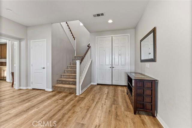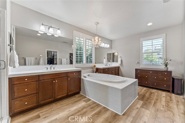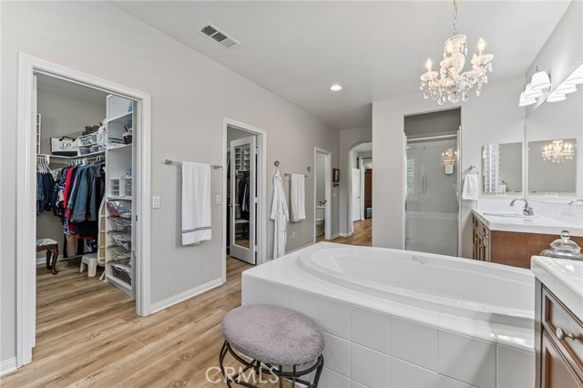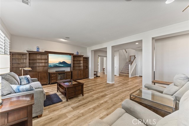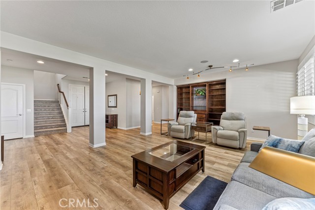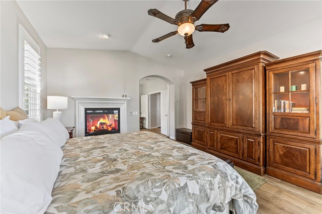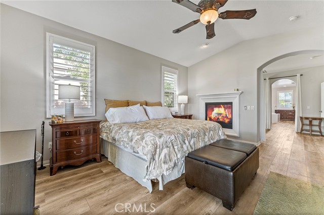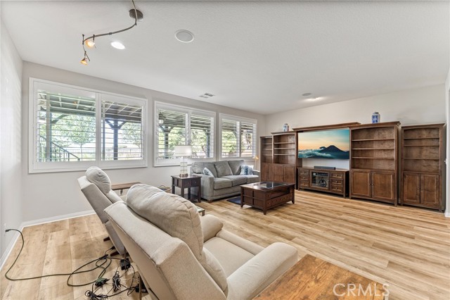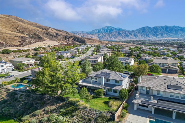 Beautiful Luxury home, sits on a quaint cul de sac with amazing evening views! Mature trees, above ground spa and 16' Swim Spa with back yard fire pit--great for entertaining. Granite countered kitchen area has all the amenities and storage for a family feast, new dishwasher, LG refrigerator and Jenn Air stove top and double oven. Primary bedroom downstairs, with sitting area/reading nook with fireplace, kitchenette and french doors to outdoor covered area-- Perfect for breakfast coffee, reading, meditation area, etc. double walk in closets, two sinks in oversized bathroom with an inviting Roman jacuzzi tub. Shutters on all windows. 4 Upstair bedrooms have been divided to create 2 suites- so many opportunities, each suite has a full bath with 2 bedrooms--teenage/grown children, college age children, guests and/or nannies or maids, etc. Upstairs deck makes use of the amazing views of the valley below, with exterior access to upstairs guest bedroom...extra-large back yard. Surround sound sytem in living, family and outdoor area. Built in bookcases in living room and newer flooring throughout this expansive open floor plan for multi generational living. 3 AC units--primary bedroom has their own unit, another for upstairs and one for downstairs. Mature fruit trees and planter boxes-Clementine, pomegranite, stawberries and carrots. Home pre wired for swimming pool. Community boasts 30 miles of hiking trails near a regional park, while only 1/2 mile to local shopping. The list of amenities goes on and on. Buyer to assume Solar Lease.
