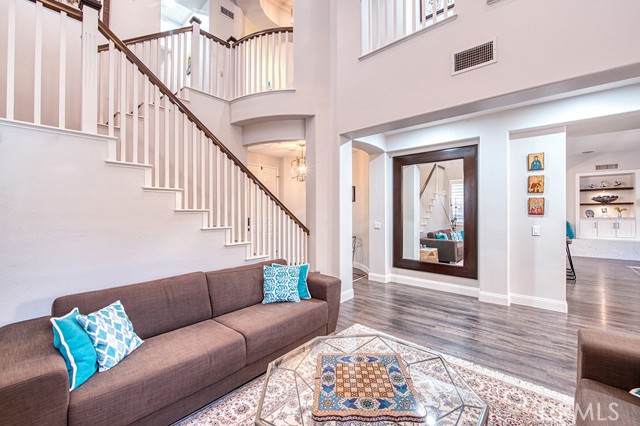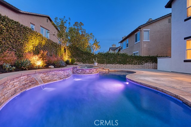 Nestled in the heart of the prestigious Coto de Caza community, this stunning residence at 16 Lyra Way is a true masterpiece of modern living. It harmoniously combines luxury, comfort, & an unbeatable location, making it the perfect sanctuary for families and entertainers alike. As you approach this gorgeous home, you'll be greeted by a charming facade. Step inside to discover an inviting circular foyer adorned with elegant flooring that leads seamlessly into the sophisticated living spaces. The grand formal living room boasts soaring two-story ceilings and an abundance of natural light, creating an airy ambiance that’s both welcoming and impressive. At the heart of the home, the gourmet kitchen is a chef’s paradise! It features sleek Carrara marble countertops with a striking waterfall island, bespoke cabinetry offering plenty of storage, and high-end appliances that cater to all your culinary needs. The adjacent private dining area, enhanced with custom built-ins & dual beverage and wine fridges, sets the stage for unforgettable dinner parties. The open family room is designed for both relaxation & entertainment, highlighted by a cozy fireplace and a built-in entertainment center. A main-floor guest bedroom with French doors provides privacy for visitors, along with a conveniently located full-sized bathroom. Venture upstairs to discover a thoughtful layout that includes four spacious bedrooms. The oversized master suite is a true retreat, featuring a luxurious ensuite bathroom and an expansive walk-in closet. Two additional bedrooms share a well-designed Jack-and-Jill bathroom. A fourth bedroom upstairs with its own en-suite bathroom offers privacy and convenience. Additionally, a versatile home office area and an upper-level laundry room with ample cabinetry make everyday living a breeze. The home is equipped with an owned solar electricity system, providing energy efficiency & savings. The new whole-house water filtering & conditioning system ensures optimal water quality throughout the home. Step outside into your own private paradise! The meticulously landscaped yard features a saltwater pool and spa, perfect for relaxation and entertaining. Host gatherings under the inviting patio cover complete with an outdoor fireplace, where cherished memories with friends and family are waiting to be made. The seamless transition between indoor and outdoor living ensures that this home is ideal for both intimate family moments and large-scale entertaining.