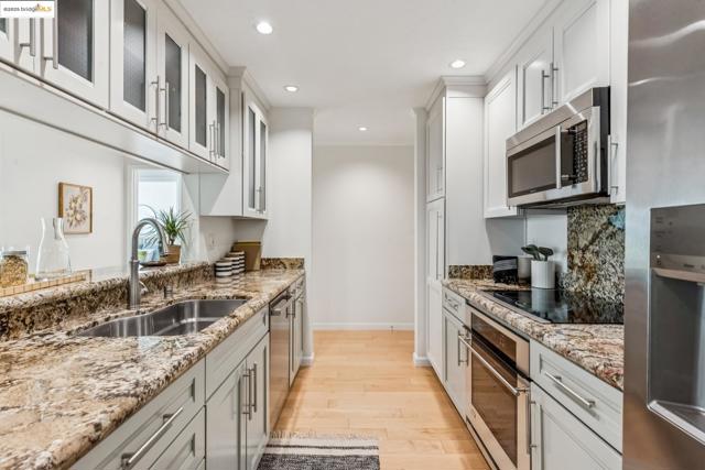 Mere blocks to Lakeshore and Grand, 811 York offers exactly what Oakland living is all about – accessibility to fun, food and culture, yet total ease and comfort once you're home. Unit 313 itself is beautiful; with a feeling of being perched above the trees, it is tranquil, peaceful and flooded in natural light. A modern, open concept kitchen encourages cooking, hosting and hanging out. Flow effortlessly to the patio, with leafy views of the cityscape. Boasting two comfortable bedrooms, and two sizable bathrooms, the apartment is flexible; the primary bedroom is large and comfortable but the second bedroom accesses the balcony. It's hard to pick which is better. And talk about access to everything fun in Oakland; you'll practically fall out of your front door and land in the heart of Lakeshore; amazing restaurants, fun around the lake, the movie theater, natural wine bar, grocery shopping and beyond is just steps from your door. The building is a gem; private, secure parking, pool, sauna, under half a mile to the freeway and transbay bus. This is quintessential Oakland living.