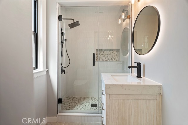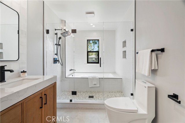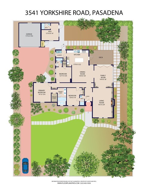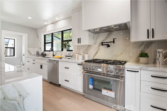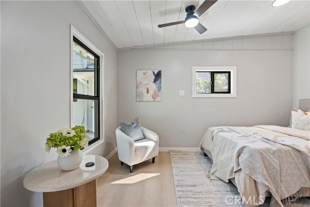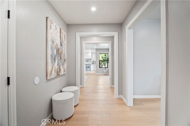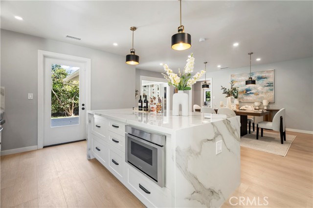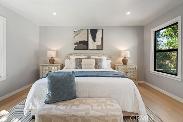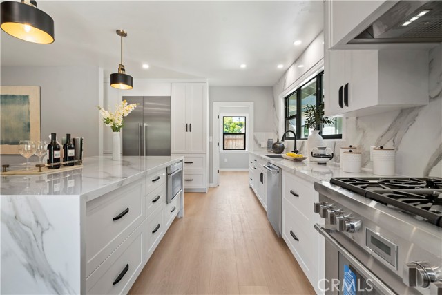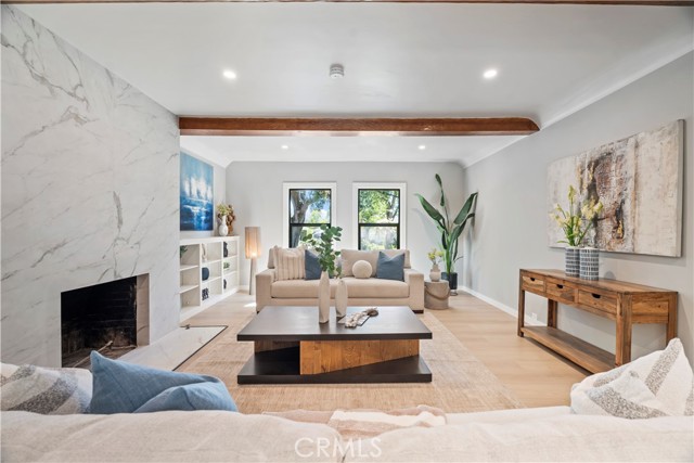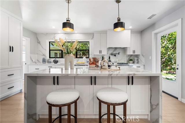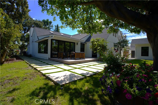 Introducing 3541 Yorkshire Road, a beautifully reimagined English Cottage style single-story residence in the prestigious Chapman Woods neighborhood of Southeast Pasadena. This rare south-facing home offers abundant natural light and positive Feng Shui energy, creating a private haven where every angle feels like living in a lush, curated garden. Just moments from San Marino, Arcadia, and San Gabriel, it blends timeless architectural charm with refined modern luxury. Every detail of the 2,417 sq. ft. main residence has been thoughtfully crafted to reflect designer sophistication and comfort. The expansive open kitchen is a true centerpiece, showcasing a dramatic waterfall island, Thermador appliances with built-in refrigerator, and generous prep space—perfect for both everyday living and elegant entertaining. Sunlight pours in through brand-new Milgard windows, while the home features a new roof with upgraded insulation, new plumbing throughout, a newer electrical box, a 2024 water heater, and a central HVAC system for year-round comfort and efficiency. Elegant flooring, designer-selected colors, and curated style choices elevate the home’s interior aesthetic. The living room opens to a new deck with custom bi-fold sliding door, creating a seamless flow between indoor and outdoor spaces. Professionally designed landscaping with garden-inspired plantings, mature greenery, and stylish concrete details surrounds the property, providing a tranquil retreat reminiscent of a private garden. Inside, a custom designer fireplace anchors the graceful floor plan, and all three ensuite bedrooms offer their own sanctuary of comfort and privacy. A detached 224 sq. ft. guest house features a fully renovated bathroom and new mini-split AC system, providing an ideal space for guests, a home office, man-cave or creative studio. Adding to the property’s one-of-a-kind charm, majestic peacocks often visit the garden—sometimes with their offspring—gracing the front yard with color and life. While most people only see these beautiful birds at the zoo, here they’re your gentle, everyday neighbors, enhancing the home’s sense of serenity and wonder. Set within a quiet, walkable neighborhood, this English Cottage style, south-facing home captures the very essence of Pasadena luxury living—combining character, elegance, privacy, and the extraordinary experience of living in your own garden.