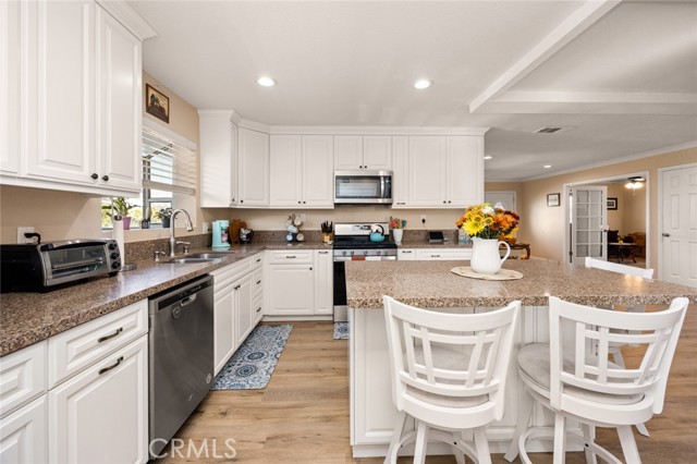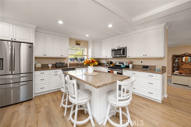 Tucked into a quiet Yorba Linda cul-de-sac, this 4-bed, 2-bath home offers comfort, charm, and thoughtful upgrades throughout. Enjoy a private backyard with green grass, a cozy fire pit zone, and a detached 2-car garage. Inside you'll find updated floors, recessed lighting, and a refreshed fireplace. The kitchen and baths were tastefully remodeled in 2020—featuring newer cabinets, vanities, fixtures, and dual-pane sliders with built-in blinds. Additional updates include a tankless water heater, paint, blinds, and a modern sprinkler system. Close to parks, schools, and town center—this is a move-in ready home with timeless appeal!