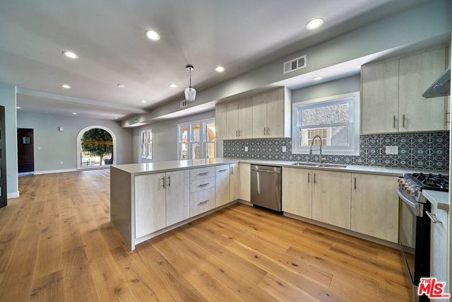 *RARE FIND* Beautifully remodeled duplex located between Miracle Mile and Hancock Park! Both units were fully remodeled from the inside out including electrical and plumbing upgrades. *One unit to be delivered vacant for immediate use! Perfect for buyer to live while generating income* The left unit has 3 bedrooms, 3 full bathrooms, and downstairs den/office. The right unit has 3 bedrooms and 3 full bathrooms. Both units feature kitchens with generous island counter spaces, modern appliances, and giant pantry. Each unit comes with in-unit washer and dryer. Property comes with swimming pool and detached garage which can be used for additional storage. Walking distance to many popular restaurants and bars with many more attractions only minutes away by car! One unit is tenant occupied; please do not disturb.