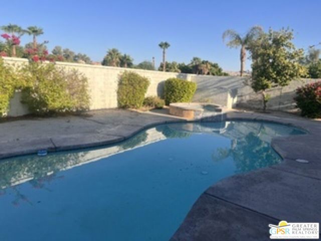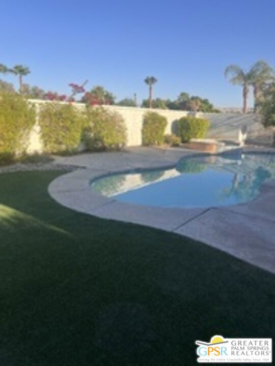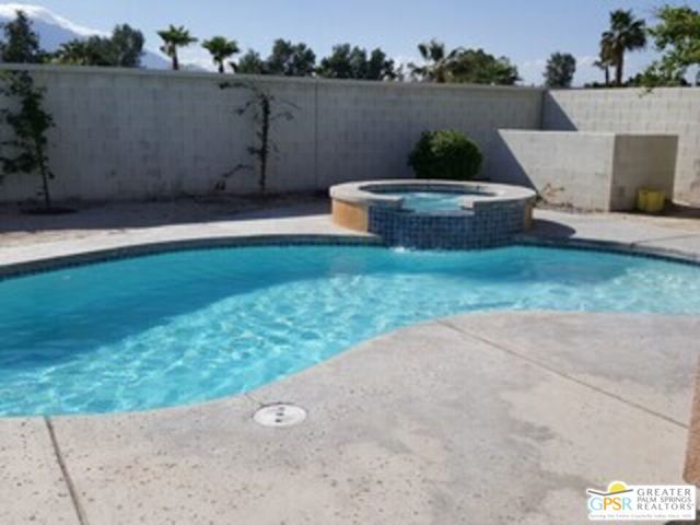 Located in Versailles, a gated community in Rancho Mirage, this charming east-facing pool home that perfectly captures the essence of modern desert living. This residence has been thoughtfully updated to offer contemporary comforts while maintaining a welcoming ambiance. Nice open floor plan, where large windows and French doors bring in abundant natural light and provide seamless indoor-outdoor living. The kitchen features tan cabinetry, solid surface countertops, and a bar area, making it a delightful space for cooking and entertaining. The bedrooms are comfortably sized, with the primary suite offering direct access to the rear yard. Additional modern updates throughout the home enhance both style and functionality. Outside, you'll find a pristine pool, ideal for cooling off during warm desert days, raised spa with cascading waterfall and a spacious covered patio area for lounging or dining al fresco. The east-facing orientation ensures plenty of sunshine and there's also a huge entry courtyard. Versailles is centrally located within the Imperial Irrigation District (IID) offering electric bill saving