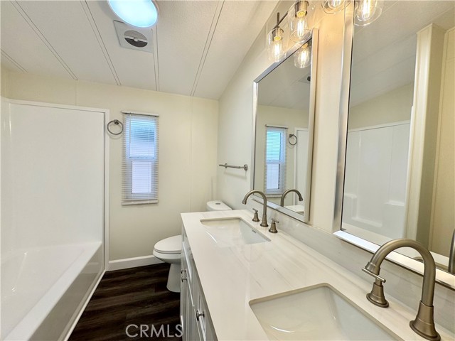 Fully remodeled and ready to move in!! This spacious 2 bed 2 bath home features upgraded kitchen, bathrooms, new windows, new floors, new AC and fresh paint. Located in the gated community of Rancho Mediterrania with amenities such as pool, spa and clubhouse this one is sure to go fast! Stop in today to come see for yourself you will not be disappointed!