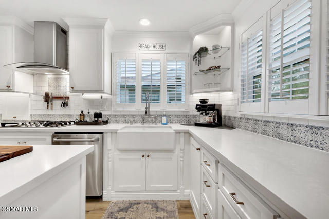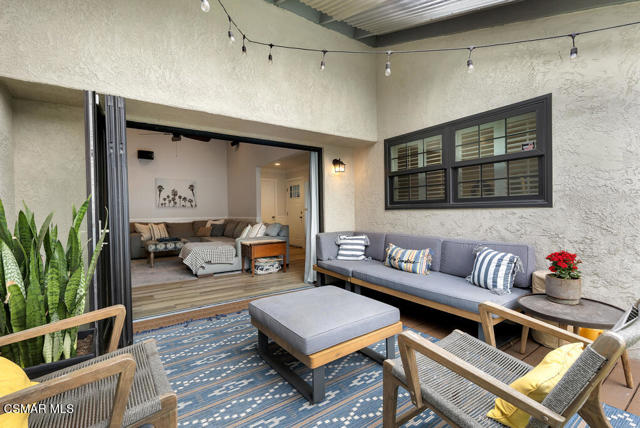 Welcome to 664 Beachport Dr. - an ABSOLUTELY STUNNING single-level, 3-bed, 2 bath, 1,417 sq ft end-unit townhome, just blocks from the ocean, in desirable Port Hueneme. From the delightful curb appeal with stamped concrete entry to the light-filled interior with vaulted ceilings, this gem impresses at every turn. The open-concept floorplan features wood-like ceramic tile, recessed lighting, crown molding and dual-pane windows throughout. The family room boasts a cozy flagstone-enhanced fireplace, custom built-in cabinets and a panoramic accordion-style door that opens to the private patio/backyard. Enjoy the contemporary kitchen showcasing quartz counters, stainless steel appliances, an apron-front sink, modern white shaker cabinetry as well as a convenient center island. Retreat to the generous primary bedroom with a walk-in closet and spa-like ensuite bathroom, complete with a barn door and crystallized onyx dual vanity. Two secondary bedrooms with stylish ceiling fans share a beautifully updated full bath. Additional highlights include an indoor laundry area and direct access to the attached 2-car garage. Upgrades continue with Bali composite window shutters, tankless water heater and a thoughtfully landscaped backyard. Centrally located near shopping, dining, parks, schools and just minutes to the beach--this home truly has it all. Welcome home!