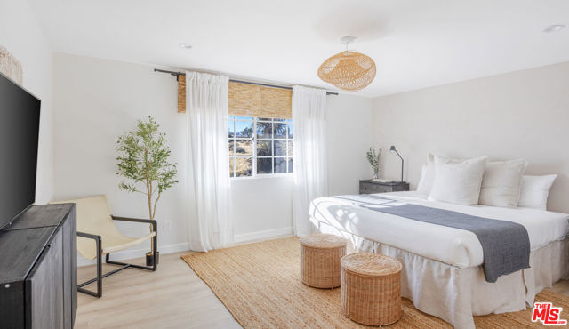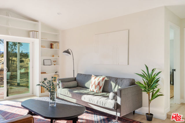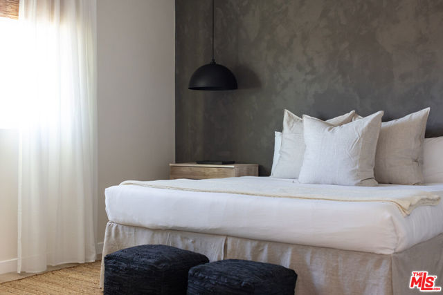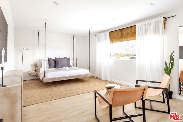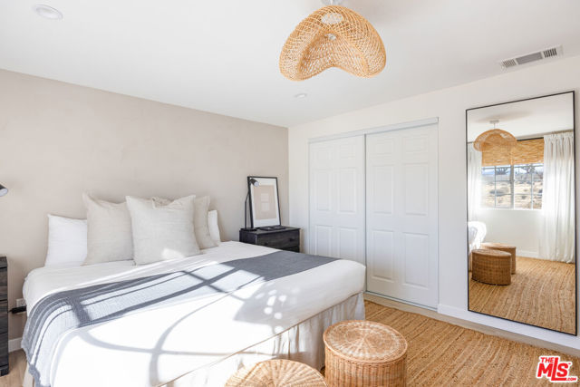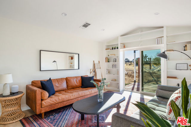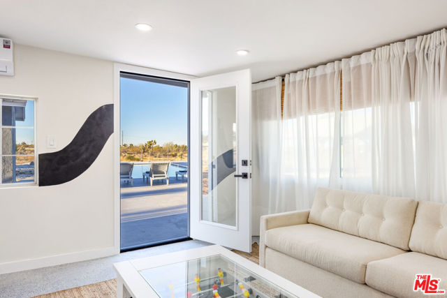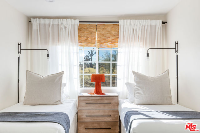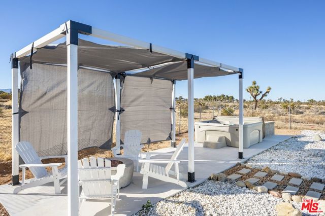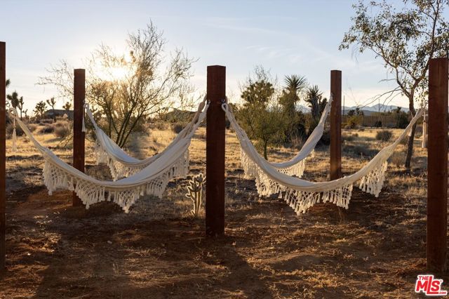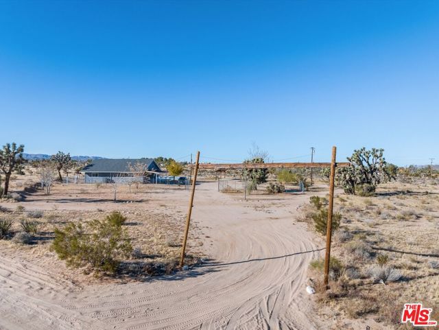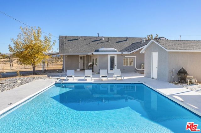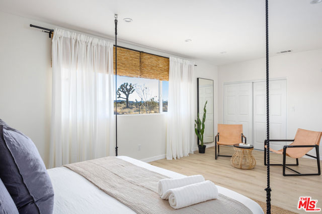 Generating $80,000 in annual gross income, this fully furnished, turnkey 5-bedroom, retreat delivers exceptional short-term rental performance and high-desert luxury. Set on five private acres in Yucca Mesa, the 2,040 sq ft home has been fully remodeled with designer finishes, including luxury vinyl plank flooring, recessed lighting, and a modern kitchen with a new cooktop, Samsung Bespoke refrigerator, shaker cabinetry, and butler's pantry. The open-concept layout is bright and spacious, ideal for entertaining. The primary suite features a spa-inspired en-suite bath, while a fifth bedroom in the pool house offers a private entrance for guests or rental flexibility. Outdoors, enjoy a resort-style setting with an Olympic-sized pool, hot tub, firepit, hammocks, and a custom Linx patio cover, all surrounded by sweeping desert and mountain views. Additional features include RV hookups, 220V carport, a storage unit, and a custom enclosed area suitable for events or parking. With HV/RL zoning, and room to expand, this property offers both immediate cash flow and long-term growth potential just minutes from Joshua Tree National Park and Pioneertown.
