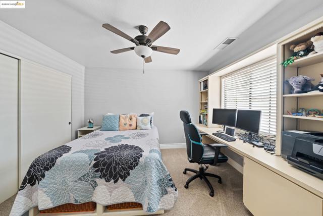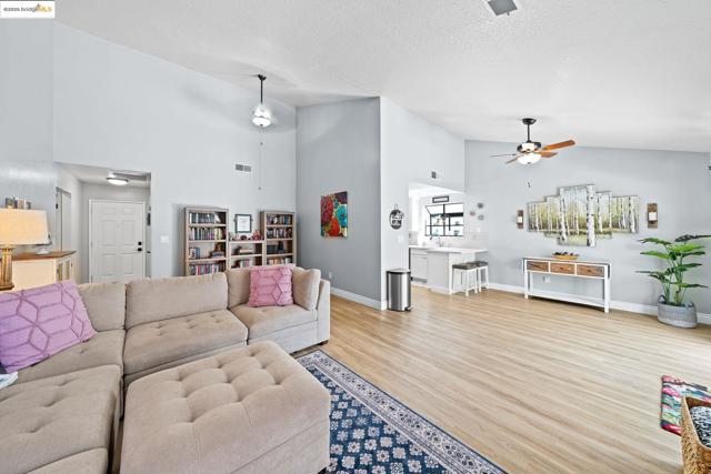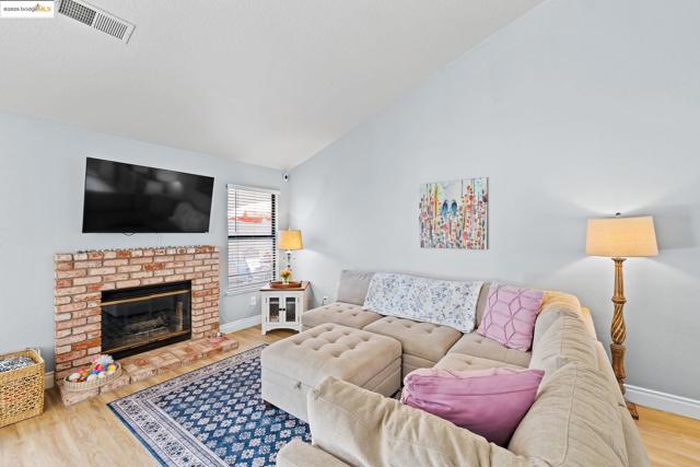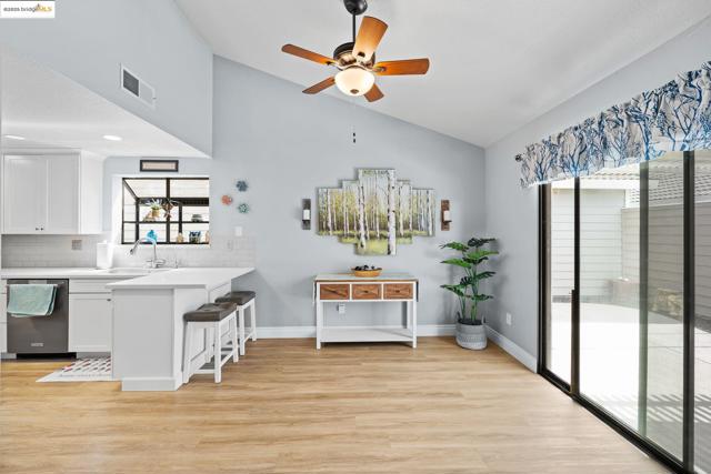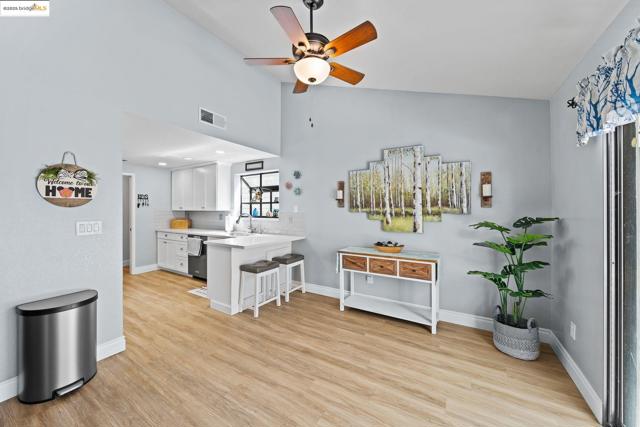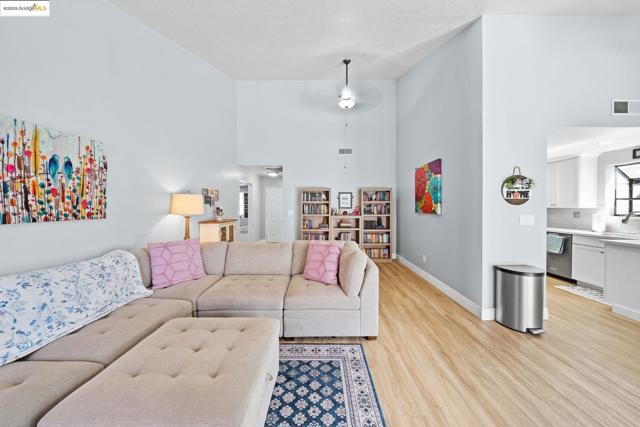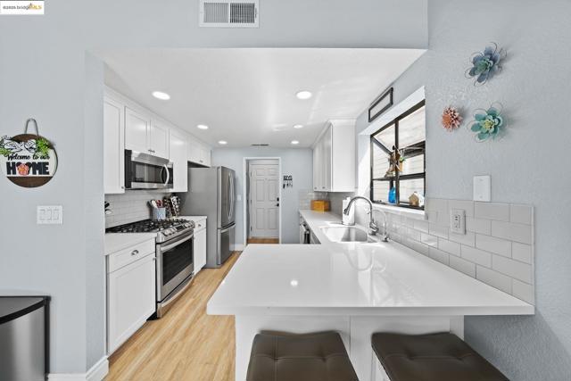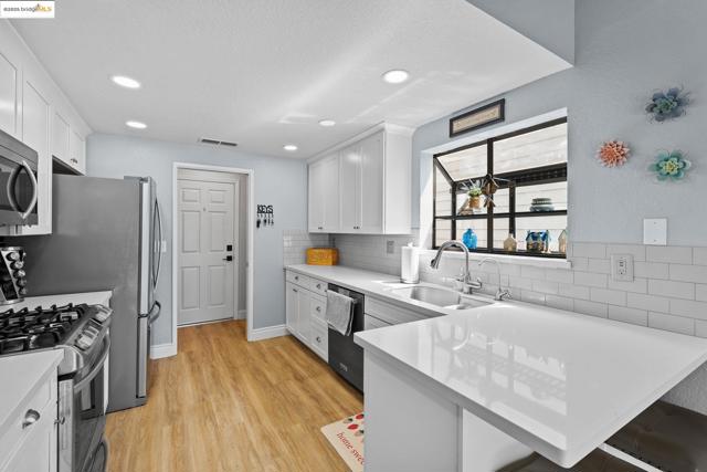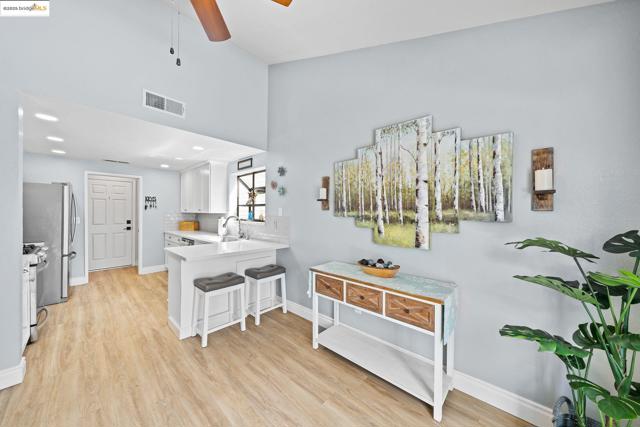 Discover effortless style and comfort in this beautifully updated 2-bed, 2-bath single-story home on desirable Camborne Drive. The 1,220 sq ft of light-filled living space feels expansive thanks to vaulted ceilings and an open-concept flow. The modern kitchen is a chef's dream, featuring quartz countertops, subway tile backsplash, stainless steel appliances, and bar seating that opens to the living and dining areas, complete with a cozy brick fireplace and custom built-ins. The spacious primary suite offers vaulted ceilings and a refreshed ensuite. Outside, relax in the private, low-maintenance courtyard with a charming pergola and concrete patio. This turnkey gem includes central HVAC, a garage fridge, and a prime location with easy access to shopping and freeways, offering the perfect blend of comfort, style, and function.