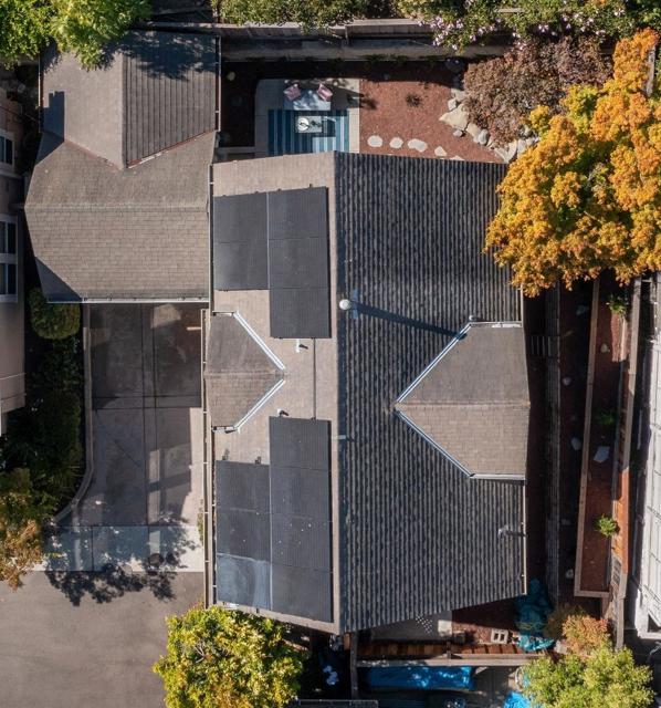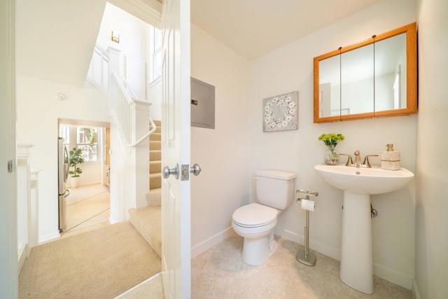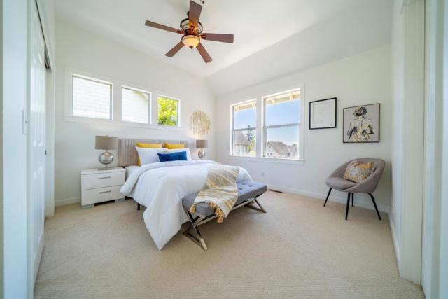 Discover comfortable living in this charming Santa Cruz home designed by Thatcher & Thompson Architects. The updated kitchen is a culinary delight, equipped with granite countertops, a dishwasher, exhaust fan, electric oven range, pantry, and refrigerator. The home features a cozy breakfast bar, perfect for casual meals. The living space is enhanced by high ceilings and a welcoming fireplace, providing warmth and ambiance. New flooring throughout includes carpet, laminate, tile, and vinyl/linoleum, providing versatility and style. For convenience, the laundry facilities are located on the upper floor and comes with a washer & Dryer. 12 solar panels provide most electrical power and serve as a hedge against future double-digit PG&E rate increases. Other energy-efficient features include double-pane windows and ceiling insulation contributing to sustainability and other cost savings. A Koi pond with waterfall provides Zen ambiance. Additional amenities include a walk-in closet in the bedroom and a single garage space. With central forced air gas heating and ceiling fans for cooling, this home ensures comfort year-round. Enjoy all that Santa Cruz has to offer in this well located delightful residence.