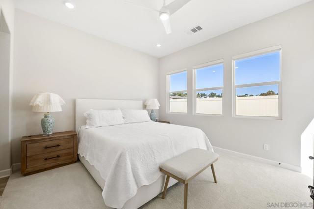 Welcome to this stunning single-story home located in the desirable gated Junipers community. This desirable "Woodlands Plan-1 Model" is designed exclusively for those 55 and better. Set on a generous lot, this upgraded residence offers modern comfort, energy efficiency, and a peaceful lifestyle. Step inside to find luxury vinyl plank flooring, creating a warm and cohesive flow. This brand new kitchen features sleek quartz countertops, new white shaker cabinets, and an open layout perfect for entertaining. Energy-conscious buyers will appreciate the additional solar panels, helping to keep utility costs low. Enjoy the privacy and space of a well-sized backyard with endless opportunities. This home is perfectly situated within the community, offering both convenience and tranquility. Don't miss your opportunity to own a move-in ready gem in one of Rancho Peñasquitos' most sought-after active adult neighborhoods! Amenities include, Luxury Pool, Pickle Ball Courts, Gym, and Clubhouse for all the Social events.