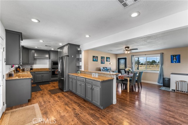 Located in North Edwards just minutes from the freeway, this spacious 4-bedroom, 2-bathroom home sits on 1.5 acres and offers both comfort and functionality. Step inside to find two oversized living areas—perfect for entertaining, a formal dining setup, or even a home office. The remodeled kitchen features stainless steel appliances, ample cabinetry, and a convenient breakfast bar for casual dining. The split-wing floor plan provides privacy, with the primary suite tucked away from the secondary bedrooms. The master bedroom boasts a custom bathroom complete with a soaking tub, a stand-alone tiled shower, and a walk-in closet so large it feels like a bonus room of its own. Additional highlights include a spacious laundry room with an oversized walk-in pantry and an extra-large garage ideal for vehicles, tools, or storage. A recently poured driveway adds to the home’s curb appeal and convenience. Outside, the fenced yard provides plenty of room for outdoor activities, gardening, or even future additions. Entertain under the covered patio or enjoy riding your horses on the land, this home will fit any lifestyle. Whether you’re looking for peaceful desert living, space to spread out, or easy access to commuting routes, this North Edwards property is ready to welcome you home.