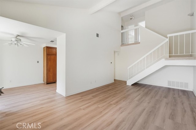 Beautiful townhome in the Highly Sought after Fairways community in Valencia with serene views of the Vista Valencia Golf Course. Enter the gated spacious private patio to access the front door. This home has been meticulously maintained and boasts BRAND new Wood Laminate floors throughout the downstairs and Plush neutral Carpet upstairs. Freshly repainted entire interior. Brand new Stainless steel Range and Microwave Hood vented to exterior. Very open light and bright with newer DUAL pane windows and sliding glass door to patio. ALL the expensive systems updated here too: NEW HVAC in 2019, NEW MAIN ELECTRICAL Panel 2025, New Water Heater in 2024 and Plumbing has been redone and newer fixtures. Open floor plan with large living space and vaulted ceilings. 2 car direct access attached garage allows for side by side parking and additional storage and shelving. Priced 60,000 LESS THAN previous model match. NO MELLO ROOS! FHA and VA approved. EASY FINANCING on this one. RELATIVELY LOA HOA with amazing grounds. FEEL like you are living in a private park with Mature Lush landscaping, trees and lots of grass areas with resort amenities like 3 community POOLS and SPA, TENNIS courts, and Basketball Court. LOCATION is a 10+++ Close to Valencia and Santa Claritas amazing Paseo system, Easy access to 5 fwy, walk to Elementary School and California Institute of Arts as well as College of the Canyons. Restaurants and Shopping close by. Pack your stuff and move in! This is the one!