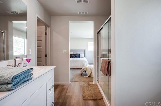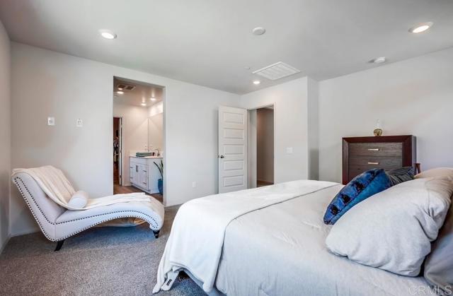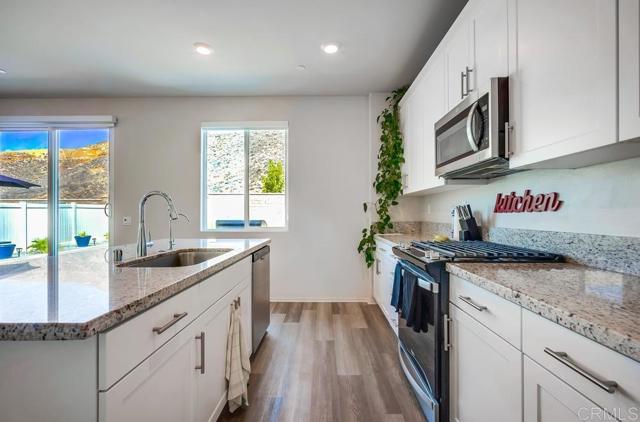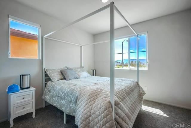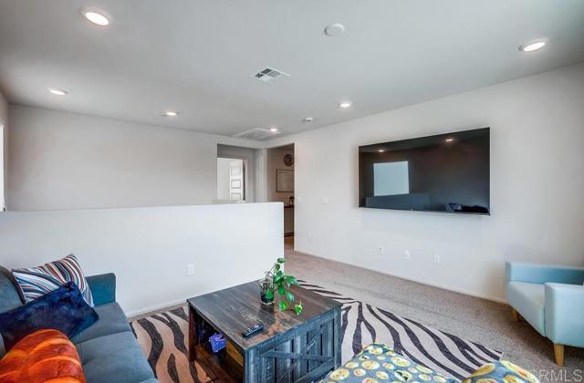This 2024 energy-efficient home with fully paid solar feels better than new with thoughtful upgrades inside and out. Nestled on a quiet cul-de-sac directly across from the park, this spacious two-story features an open-concept living area, a versatile upstairs loft, and a convenient entry-level bedroom with a full bath. The kitchen offers white cabinetry, granite countertops, and EVP flooring, flowing seamlessly into the dining and living spaces—perfect for entertaining. Upstairs, you’ll find three spacious bedrooms, including the primary suite with a huge dual vanity bathroom, oversized walk-in closet, and walk-in shower. The second upstairs bath includes a full bathtub, ideal for families. The seller has also added stamped concrete front and back. The large backyard features a stamped concrete patio slab and landscape custom concrete borders. Irrigation system front and back, and the backyard prepped for sod or turf. Washer, dryer, refrigerator, water softener, and two oversized TVs are included with a full-price offer, and all furniture is negotiable. With modern energy-efficient construction, stylish upgrades, and a fantastic location near community amenities and outdoor recreation, this move-in ready home is ready to make your dreams come true!