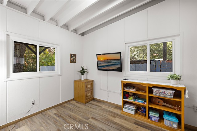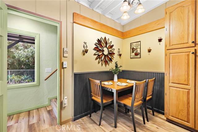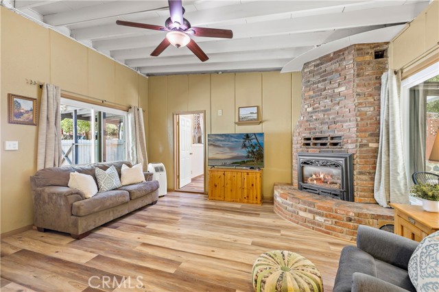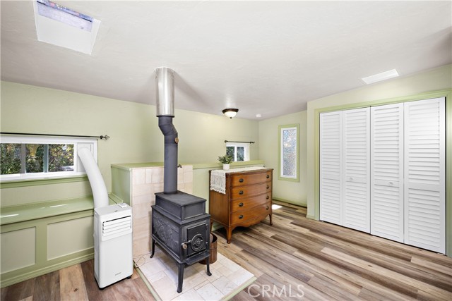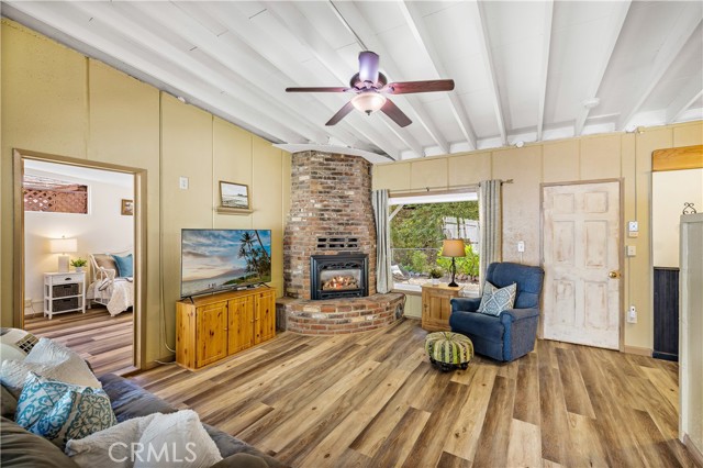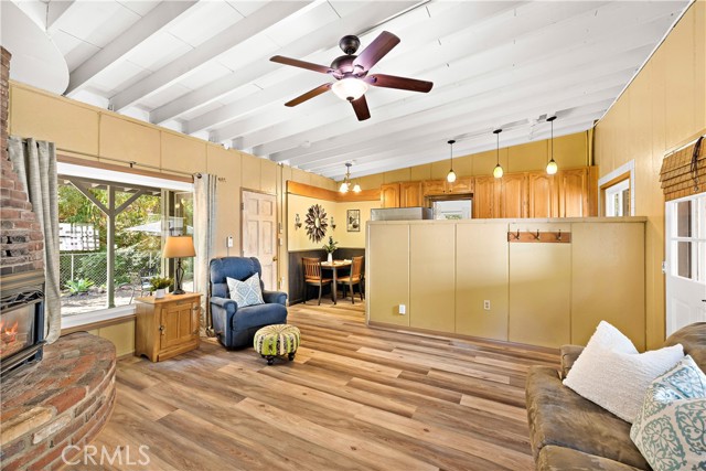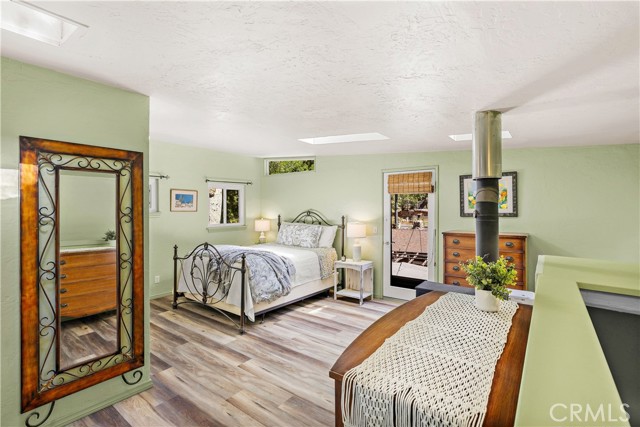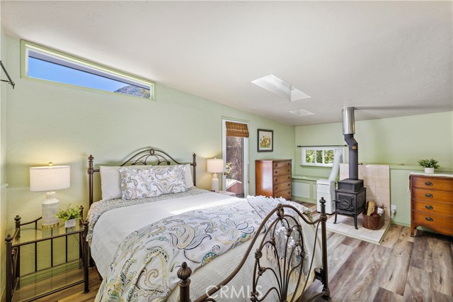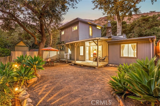 Charming creekside home with plenty of outdoor space for pets, gardening, and outdoor living. Situated on a fully-fenced lot that backs to a peaceful creek, this property offers both privacy and a beautiful natural setting. Step inside to find fresh updates, including new luxury vinyl flooring throughout and a freshly painted exterior. The main level includes two bedrooms and a ¾ bathroom, a large living room featuring a brick fireplace with a propane heater insert, and the cozy kitchen with adjacent dining nook. Upstairs, you’ll find a spacious primary suite complete with a full bathroom and a wood-burning stove, creating a relaxing and private retreat. Enjoy the outdoors year-round on the covered back patio, which overlooks the creek and the generously sized backyard. Spacious front yard storage shed adds convenience for tools, outdoor gear or hobbies. This home is move-in ready and is ideally situated off the main road. Located in a vibrant neighborhood near the Cleveland National Forest, you’ll enjoy easy access to hiking and biking trails, horse facilities, local eateries, community activities and events, a nature preschool, Silverado Park + Community Center, award-winning schools, and the Silverado Public Library. Come experience canyon living at its finest.