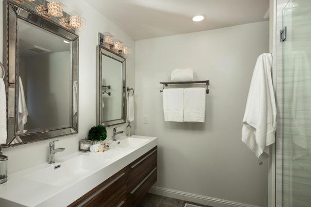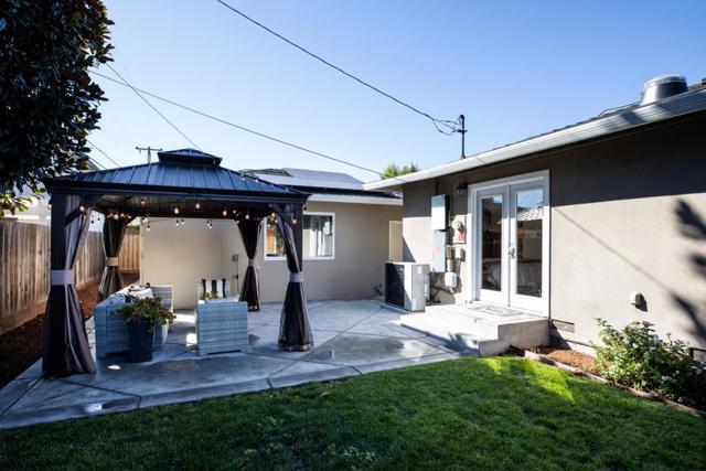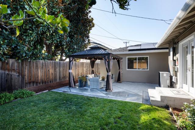Extensively remodeled home in sought-after Ortega Park with solar power and Tesla Powerwalls for backup. Bright open concept design with living, dining, and stunning kitchen with island seating flowing in one expansive space. Engineered wood floors, crown moldings, and wainscot paneling add refined detail. Smart-home upgrades include keyless entry on every exterior door, smart light switches, Nest thermostat, and video doorbell. 4 bedrooms and 3 remodeled baths feature a private primary suite with outdoor access and a second suite ideal for guests. Luxuriously updated baths offer automatic entry lighting and beautiful finishes. Detached oversized 2-car garage with EV charging and electronically gated driveway anchor the rear yard with lawn and gazebo-covered patio for entertaining and play. Blocks to Ortega Park, half a mile to Apple Park campus, and access to top Cupertino schools: Stocklmeir Elementary, Cupertino Middle, and Fremont High. A wonderful place to call home in the heart of Silicon Valley.