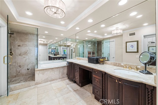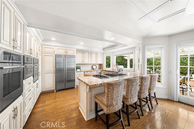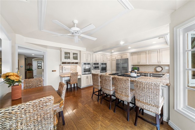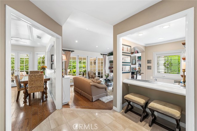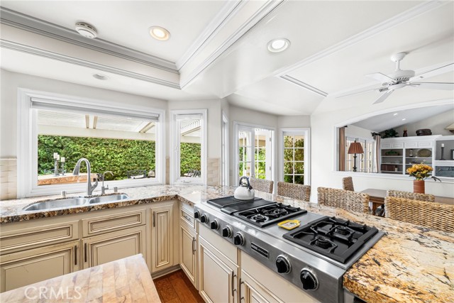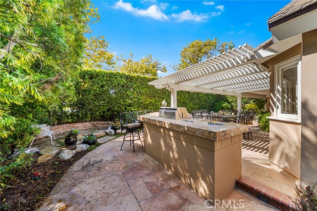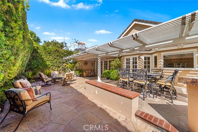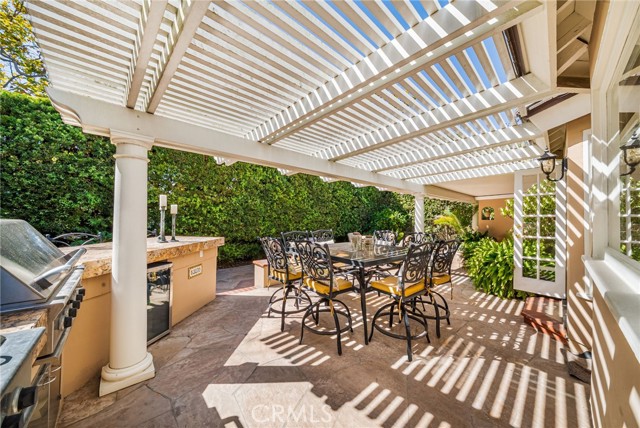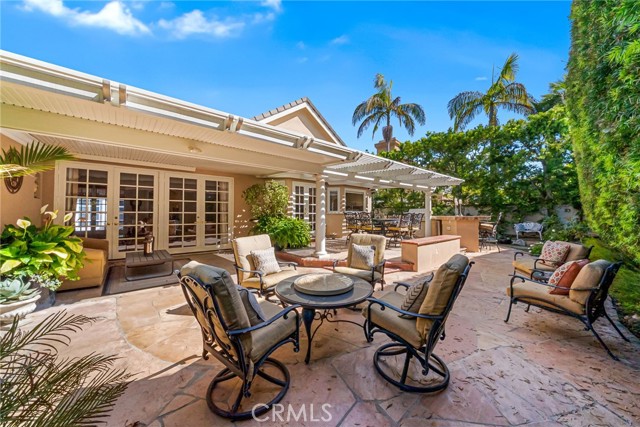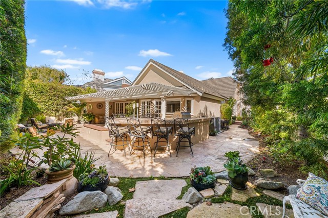 Nestled within the prestigious guard-gated community of SeaCliff on the Greens, this rare single-story coastal residence offers nearly 2,700 square feet of refined elegance in a serene, ocean-close setting. Thoughtfully designed for both comfort and style, the home features three spacious bedrooms, a versatile den, and two and a half baths. The chef-inspired kitchen boasts upgraded stainless steel appliances, including dual dishwashers, double ovens, and a microwave, along with a convenient breakfast bar and a sunny breakfast nook with French doors leading to the backyard. It flows seamlessly into the inviting family room, complete with a cozy fireplace, convenient built-ins, a wet bar, and direct access to the private backyard with a built-in BBQ—perfect for entertaining and relaxed coastal living. The primary suite serves as a true retreat, featuring a fireplace, dual walk-in closets, and a spa-like bathroom with dual vanities, a makeup station, soaking tub, and separate shower. The private atrium off the primary suite showcases an in-ground spa with soothing fountain, creating the ultimate space for rest and rejuvenation. Secondary bedrooms are generously sized and share a Jack-and-Jill bath with dual sinks and a combined tub and shower. Additional highlights include a dedicated laundry room with direct garage access and custom built-ins. Perfectly situated in a prime interior location, this exceptional home is just moments from the beach, The Huntington Club, Downtown Huntington Beach, top-rated schools, and the area’s best shopping and dining.