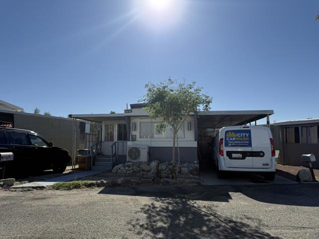 Discover this beautifully upgraded 4-bedroom, 1-bathroom manufactured home located in Healing Sands Mobile Home Park, an all-age gated community in Desert Hot Springs. This residence combines comfort, style, and affordability. Experience the elegance of laminate flooring, modern lighting, and upgraded electrical outlets, complemented by fresh paint and a recently refinished kitchen. Additional features include two exterior storage units, a laundry room equipped with a washer and dryer, and a covered carport accommodating two vehicles. Enjoy community amenities such as a pool, spa, and laundry facilities.