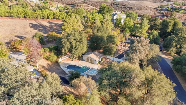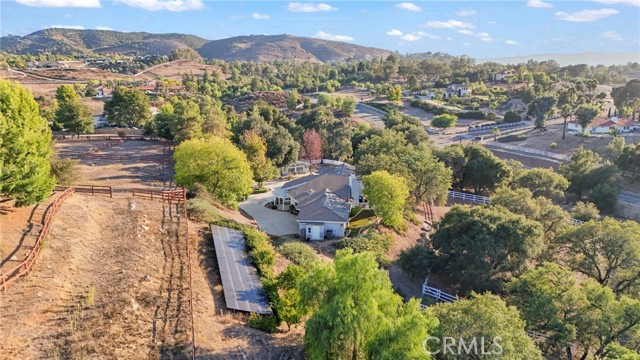 Escape to your own private equestrian retreat tucked within the scenic La Cresta community. With a guest house & 5 ½ acres, this one-of-a-kind property combines rustic charm with modern luxury, creating a secluded escape with easy access to city life. The main residence offers approximately 3,000 sq ft of beautifully refreshed living space, showcasing thoughtful updates throughout. Energy efficiency takes center stage with a 48-panel owned solar system, 2 new AC units & a new septic system. Enjoy breathtaking views from every window, vaulted ceilings that enhance the sense of space & rich wood-look tile flooring tying it all together. The gourmet kitchen impresses with quartz countertops, contemporary cabinetry & new high-end stainless steel Miele & Thor appliances, while the airy great room features exposed beams & a warm wood-burning fireplace. This versatile home includes 3 bedrooms plus an office with a private entrance—ideal for remote work or a home business. One of the secondary bedrooms also features its own entrance & en-suite bath, great for guests or extended family. The primary suite is a relaxing escape with dual walk-in closets, double vanities & a private patio complete with a hot tub hookup. An additional den offers the option for a 4th bedroom if desired & the spacious laundry room includes a built-in sink for convenience – and yes, a view from here too! Outdoors, you’ll find a charming 500 sq ft guest house providing privacy & comfort with its own kitchenette, full bath, gated driveway & private yard—great for visitors, multi-generational living or rental income. The newly resurfaced pebble-tec pool with updated auto-fill filtration system is the perfect place to cool off after a long day. The 5 1/2 acre lot is fully fenced & also includes a fruit orchard featuring lime, orange, grapefruit & olive trees. The garden shed is ideal for the green thumb in the family & the mature oak canopy add to the property’s natural beauty. (Irrigation for property via well adding to lower utility cost.) The custom-built barn includes 3 horse stalls, a tack room & an outdoor wash bay. Two large barn doors make it easy to convert the space for RV/boat storage or even a workshop. Alternative access is available via a separate driveway for this area. Surrounded by sweeping views of La Cresta & the Cleveland National Forest, this remarkable estate offers the rare blend of privacy, functionality & natural beauty—all just minutes from the heart of town.