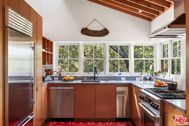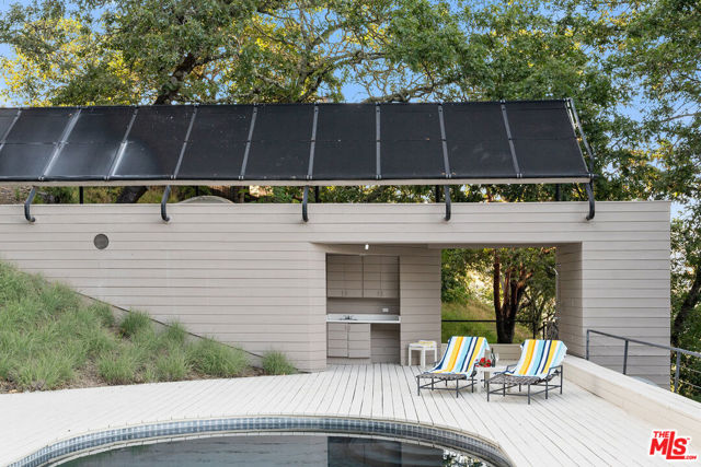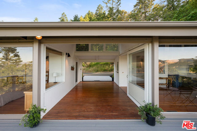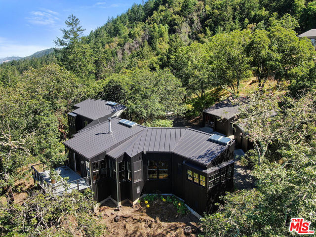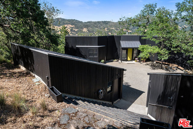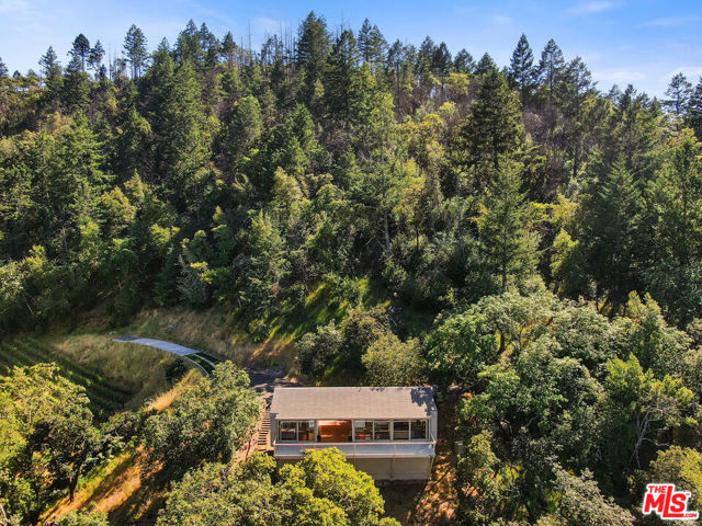 Welcome to unparalleled sanctuary spread across over 47 acres of pristine land. Designed by renowned architect William Turnbull, the 2,500-square-foot main house seamlessly integrates with the surrounding landscape. The gated and secure driveway leads up from the valley below to a courtyard formed by 2 separate garages and by the tall wall of the house. A masterpiece of design featuring two spacious bedrooms, open floorpan with gourmet kitchen - SubZero fridge, Dacor gas range, Miele dishwasher & wood burning fireplace. Clad in vertical 2x6 tongue and groove cedar boards, the house harmoniously curves along the contours of the hillside, creating a captivating visual harmony. Step into the thoughtfully designed interiors featuring exquisite details and premium materials. A striking window wall bathes the main living area in natural light, while exposed Douglas fir decking, vertical grain Douglas fir plywood cabinets, and cherry floors imbue the space with warmth and sophistication. The master bedroom offers a serene escape with a cedar soaking tub, or ofuro, nestled in a window-clad alcove, providing a tranquil oasis just steps from the bed. Enjoy outdoor living at its finest, where majestic oak trees provide a timeless welcome. A detached 1bdr 1ba 1,995-square-foot guest house with full kitchen and a basement, designed by SF modernists Marquis & Stoller and recently remodeled, offers additional accommodation and is complemented by a private large deck with breathtaking panoramic views. An outdoor pool and a pool house designed by architect Dan Solomon. There is more: Embrace the essence of wine country living with 1 acre of premium Cabernet Sauvignon producing grapes - immediate income (3 vineyard blocks), planted in high-altitude vineyard in the esteemed Mt. Veeder AVA. Additionally, explore the private hiking trail leading to the summit of the mountains, offering panoramic views of Sonoma and Napa valleys. Recent enhancements and modern upgrades: a metal roof - main house, security gate system, ring, nest, panoramic windows, remodeled guest house - freshly painted, new sliding doors. Enhanced Outdoor Spaces: newly constructed observation area adjacent to the guest house, providing a unique vantage point to enjoy the breathtaking landscape. You can dine under under the stars or build an additional structure to enjoy the views. Impeccable Maintenance: All structures have been freshly painted, reflecting meticulous attention to detail and ensuring lasting appeal. Additional Potential: A previous owner left plans to add an 800-square-foot extension to the guest house, offering further opportunities for customization and enhancement. Mt. Veeder is considered also suitable to grow black truffles since climate and underground water resources might be ideal for cultivation conditions. Well is 260 feet deep, it's on top of a hill, gravity fed to the houses. Well pumps water to 10,00 gallon concrete, water tank, free flowing. This is the epitome of luxury living in Napa, offering a harmonious blend of natural beauty, architectural excellence, and modern amenities amidst the tranquil splendor of the Mayacamas Mountains. Gated and fenced with owned pool solar and two Tesla batteries, CellGate Watchman W480, Ring, & Nest. Located minutes to world class wineries and restaurants. A scenic 20 mins drive places you in the heart of Yountville or Glen Ellen in Sonoma. This exquisite property boasts a unique blend of natural splendor, architectural distinction, and modern amenities, making it an ideal haven for discerning buyers who value privacy, a great reputation and serenity.