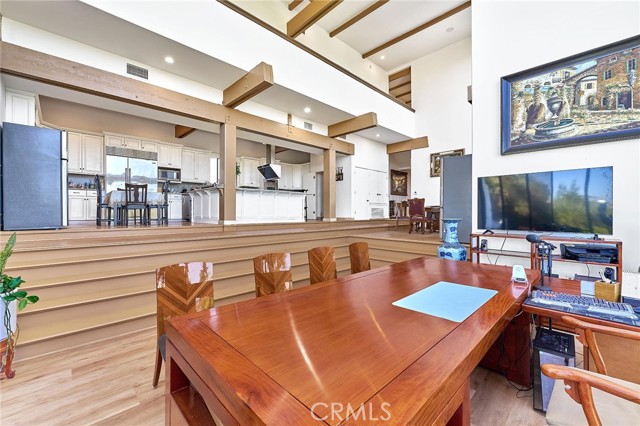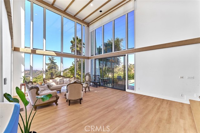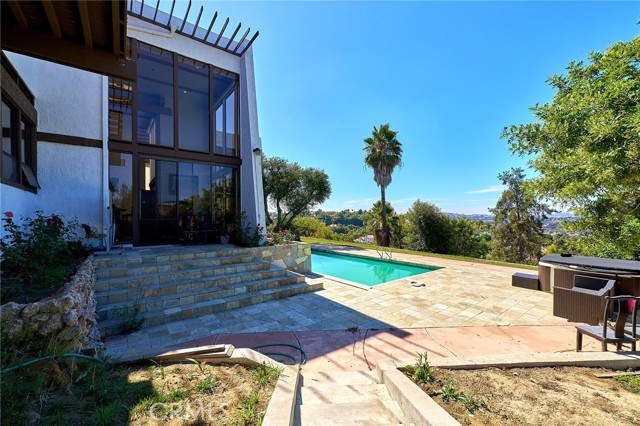 The best is that the purchase of this building comes with a bonus of over 3,700 square feet, including a 1,000-square-foot permitted ADU. The oversized 7-car garage and large living room could even be used as a clubhouse. This timeless 5,306-square-foot residence, nestled in the prestigious Country Estates community, blends historic charm with refined luxury. Originally a grand library, the residence retains its architectural splendor, with soaring ceilings and expansive windows bathing the interior in natural light while offering sweeping views of the surrounding landscape. This is the only hilltop property in the Country Estates community where both buildings are situated on flat land. Situated on nearly 1.5 acres, the property offers ample space, privacy, and a resort-style lifestyle. The main house boasts 5 bedrooms and 4.5 bathrooms, with a thoughtfully designed layout, including a first-floor master suite, perfect for entertaining family, friends, or guests. A chef's kitchen with a separate prep kitchen is perfect for entertaining, while a private wine cellar enhances the residence's refined charm. Outdoors, a beautiful pool provides the perfect spot for relaxation and gatherings under the open sky. This extraordinary estate, boasting iconic architecture, modern amenities, and spaces for living, working, and entertaining, is a rare find in one of the area's most sought-after communities.