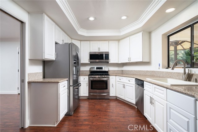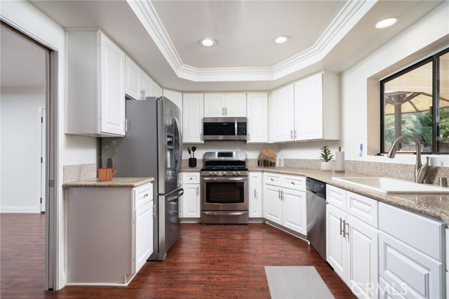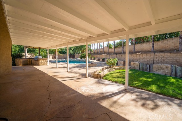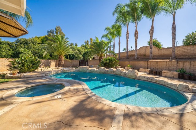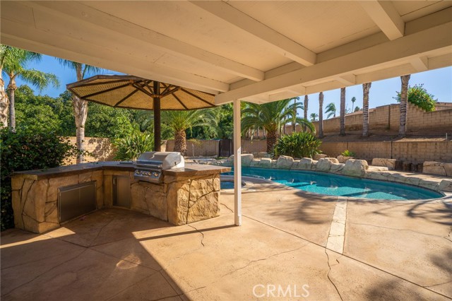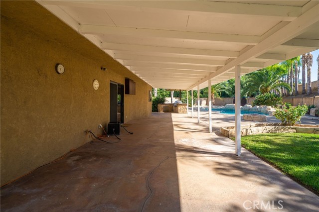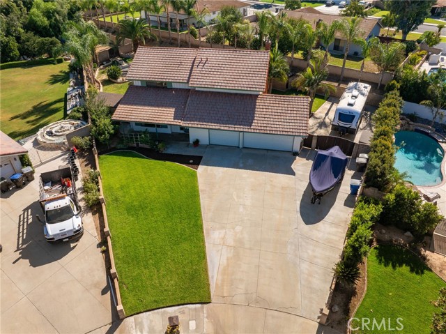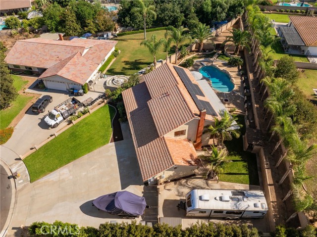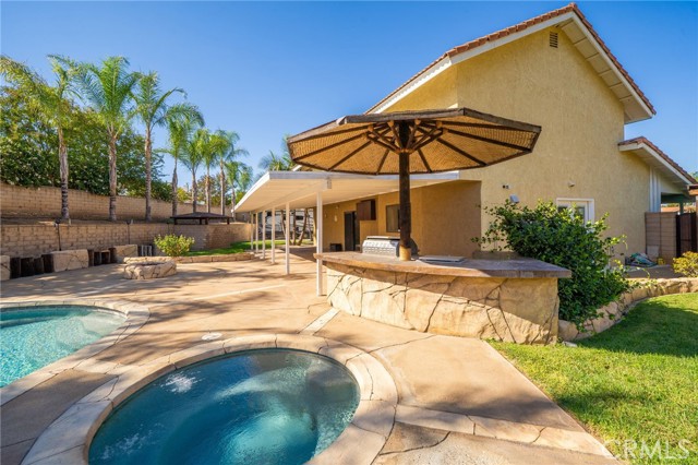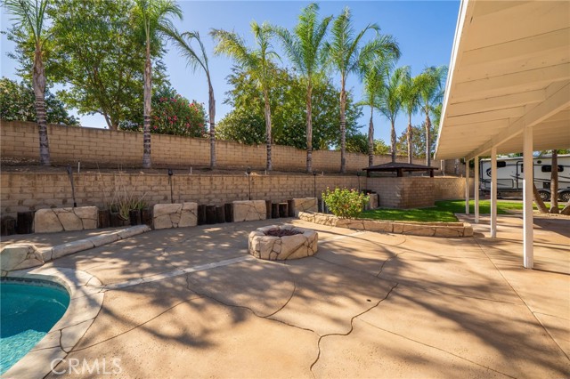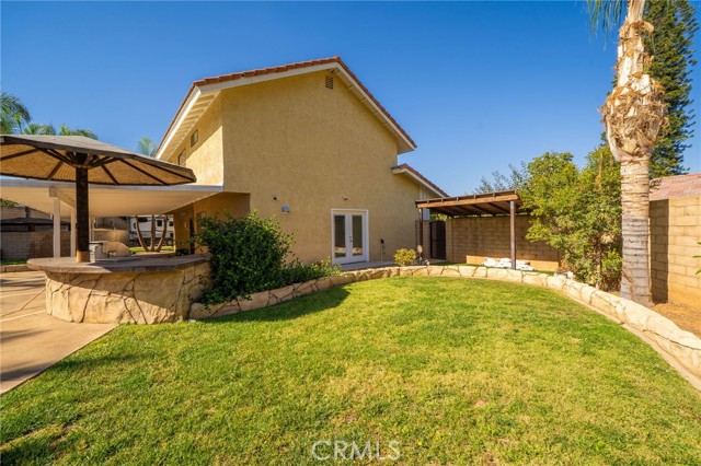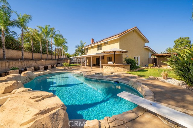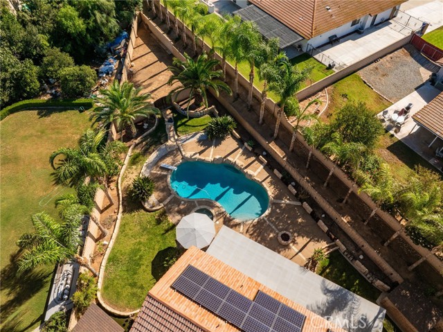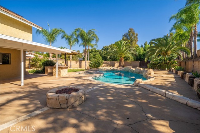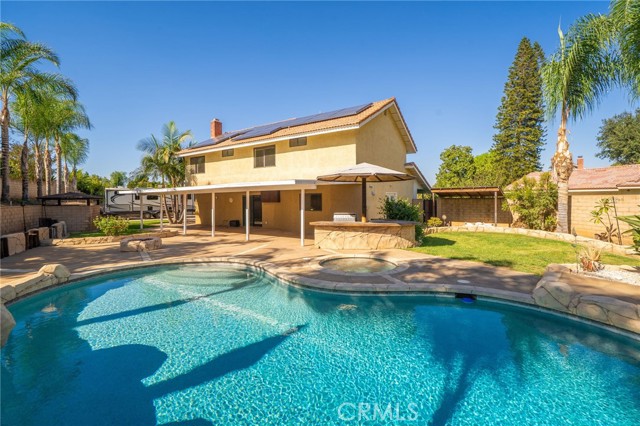 Welcome to 2330 Peppertree Lane, nestled at the end of a cul-de-sac in one of Riverside’s most desirable neighborhoods. Situated on an expansive 18,295 sq. ft. lot, this beautifully upgraded residence offers 2,177 sq. ft. of refined living space, enhanced by thoughtful renovations and an entertainer’s dream backyard. The front exterior has been recently painted, creating a crisp, modern curb appeal that complements the home’s elegant design. There is plenty of parking space, including a side driveway that could be ideal for RV parking. The outdoor space has been transformed into a private resort-style retreat. A custom Pebble Tec pool—including a remote-controlled system—serves as the centerpiece, surrounded by custom rock walls, stained and sealed concrete decking, and lush, low-maintenance landscaping. Towering palm trees, planted with a drip irrigation system and mulch for weed control, add a tropical ambiance. A built-in rock BBQ island, featuring a premium Lion grill and ice chest beneath a Palapa, creates the perfect space for outdoor dining and entertaining. There’s also a firepit for enjoying summer nights under the stars. Inside, the home has been enhanced with an array of high-end upgrades designed for both comfort and convenience. The kitchen is equipped with quality appliances, and the garage floor has been professionally finished with epoxy and sealant. Bathrooms have been completely remodeled, including a fully redesigned primary suite featuring a rainfall shower, updated flooring, and a walk-in closet. Additional features include laminate flooring, updated stonework around the fireplace, dimmable LED lighting in the kitchen and living room, and ceiling fans in every bedroom. For added efficiency and comfort, the home includes dual whole-house fans—one servicing the entire home and one dedicated to the master suite—as well as paid-off solar panels, offering long-term energy savings. The expansive lot offers incredible potential for future growth, with ample space at the rear corner of the property—perfect for adding an ADU with its own gated entry, detached guest suite, or home office setup (buyer to verify). Blending timeless design with modern enhancements, this home delivers exceptional indoor and outdoor living on an oversized lot. This is Riverside living at its finest—upgraded, freshly painted, and move-in ready. Make this great home yours today.