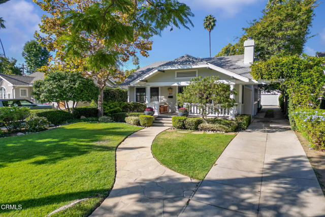 Welcome to this charming 1920s bungalow, situated two blocks from Caltech and the esteemed Huntington Gardens. Located on a tree-lined street in a historic neighborhood, this endearing home retains many of its original features, meticulously restored with an emphasis on period detail. A thoughtful 2004 remodel seamlessly integrated modern conveniences with the rich architectural character. The kitchen, boasting custom cabinetry, a breakfast nook with a custom walnut table, Viking range, Sub-Zero refrigerator, Asko dishwasher, and Shaw farm sink, was prominently featured in the Better Homes and Gardens magazine. Adjacent to the kitchen is a laundry room, equipped with a fully enclosed, undercounter washer and dryer, additional storage, and a Shaw farm sink. The spacious master bedroom suite, complete with a cedar-lined walk-in closet, offers direct access to the rear garden. The two additional bedrooms also feature walk-in closets and numerous windows, providing light-filled views of a picturesque fern garden. A second bathroom is conveniently located off the hallway. Other upgrades include a NEST thermostat, ADT security system with 3 cameras, and a wirelessly run Rechio sprinkler system that can be completely run from your phone. Don't miss the charm of this attractive home located in close proximity to Lake Avenue shops and restaurants, Caltech, Polytechnic School, and the Huntington Gardens.